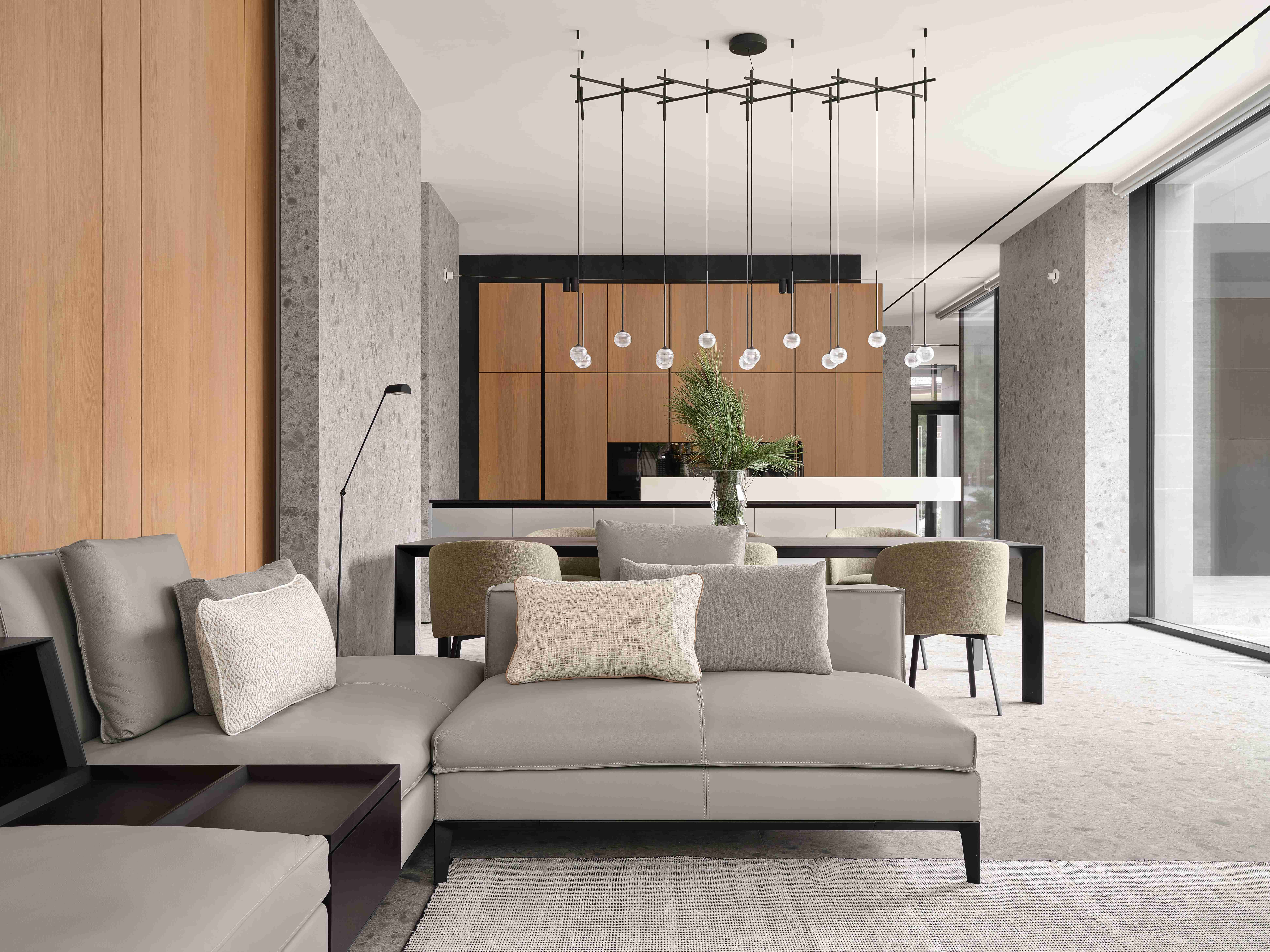 The interior of GROVE HOUSE does not exist separately from the architecture — it is born from the same forms and materials. Upon entering, one immediately senses that it could not have been otherwise. The space rests on an architectural foundation, while furniture, lighting, and textiles only complement it, enhancing the sense of unity. The precision of junctions and balance of proportions create a resonant minimalism where every line is in its place.