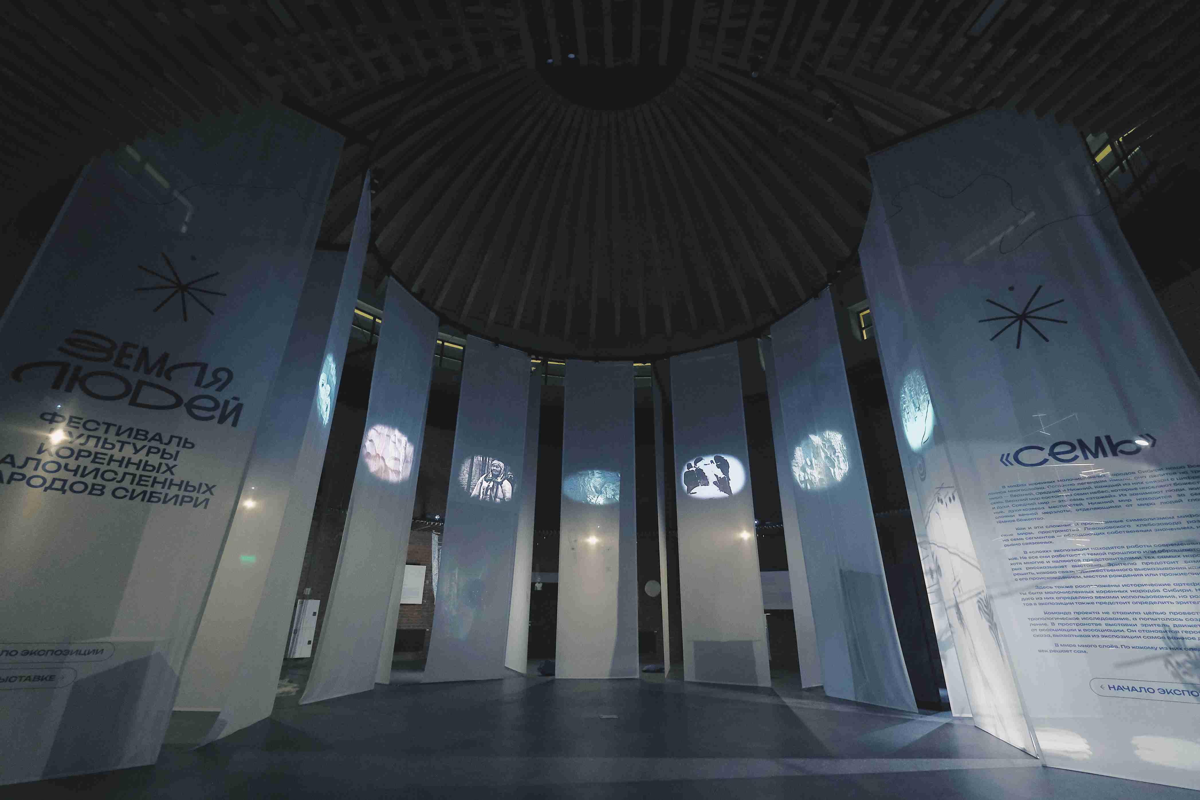About the project (provided by the applicant) The architecture of the Seven exhibition presents a barely perceptible presence of a delicate accent while solving three key tasks: zoning, creating an image in harmony with the exhibition concept, and displaying works within the walls of a cultural heritage site. The exhibition was part of the “Land of People” festival, which over three days introduced residents and visitors of St. Petersburg to the culture and way of life of the indigenous small-numbered peoples of Siberia.