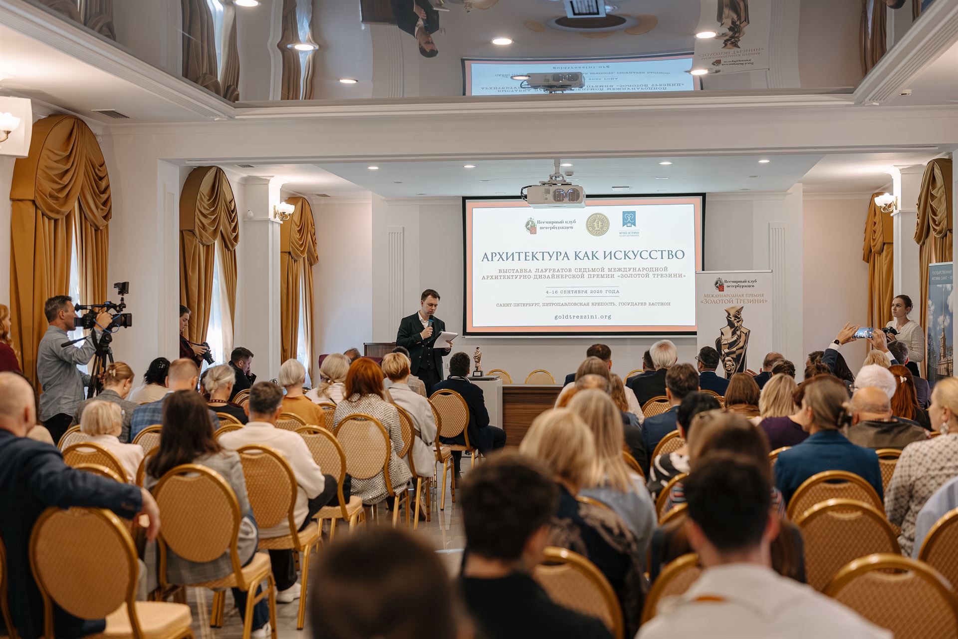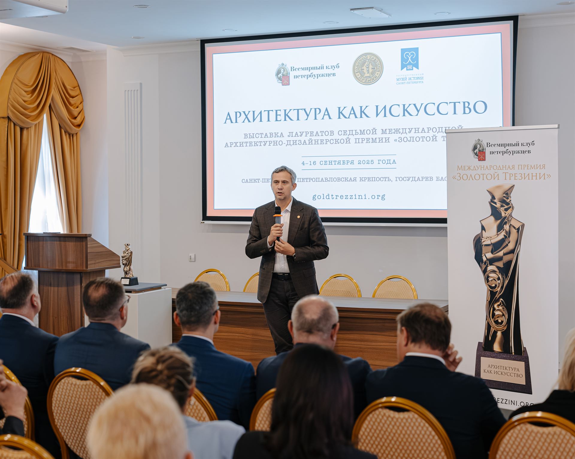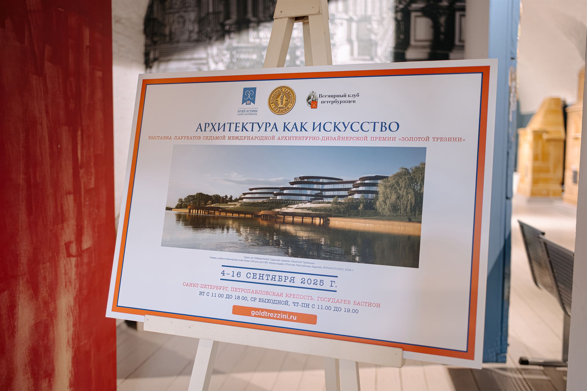 On September 3, 2025, the official opening of the Architecture as Art exhibition took place in the conference hall of the State Museum of the History of St. Petersburg. The exhibition showcases the laureates of the 7th International Golden Trezzini Awards for Architecture and Design. The event was organized by the Worldwide St Petersburg Club, the Awards' Organizing Committee, and the Museum. It attracted significant interest from both professionals and the general public, filling the hall to capacity.