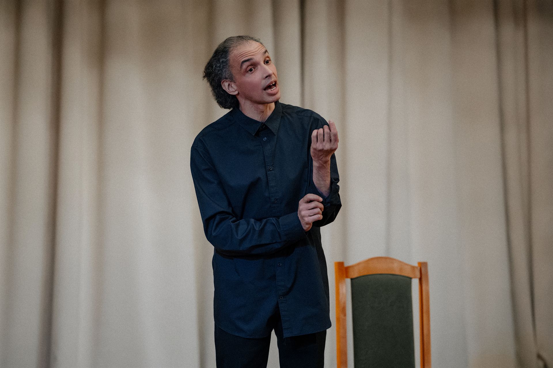Короткий текст «Египетских ночей» — незавершенного, странного произведения Пушкина — был услышан и почувствован каждым зрителем. Образы Чарского, светского петербуржца, осознающего свой поэтический дар, но мучительно прячущего его за маской светского безразличия, и странствующего итальянского импровизатора в исполнении Данила Лавренова сталкивались и переплетались. Голос артиста то опускался до доверительного шепота, то взмывал к вершинам трагического, но совершенно органичного пафоса. Иногда казалось, будто сам автор в соседней комнате отложил перо и прислушивается к тому, как оживают его герои.
