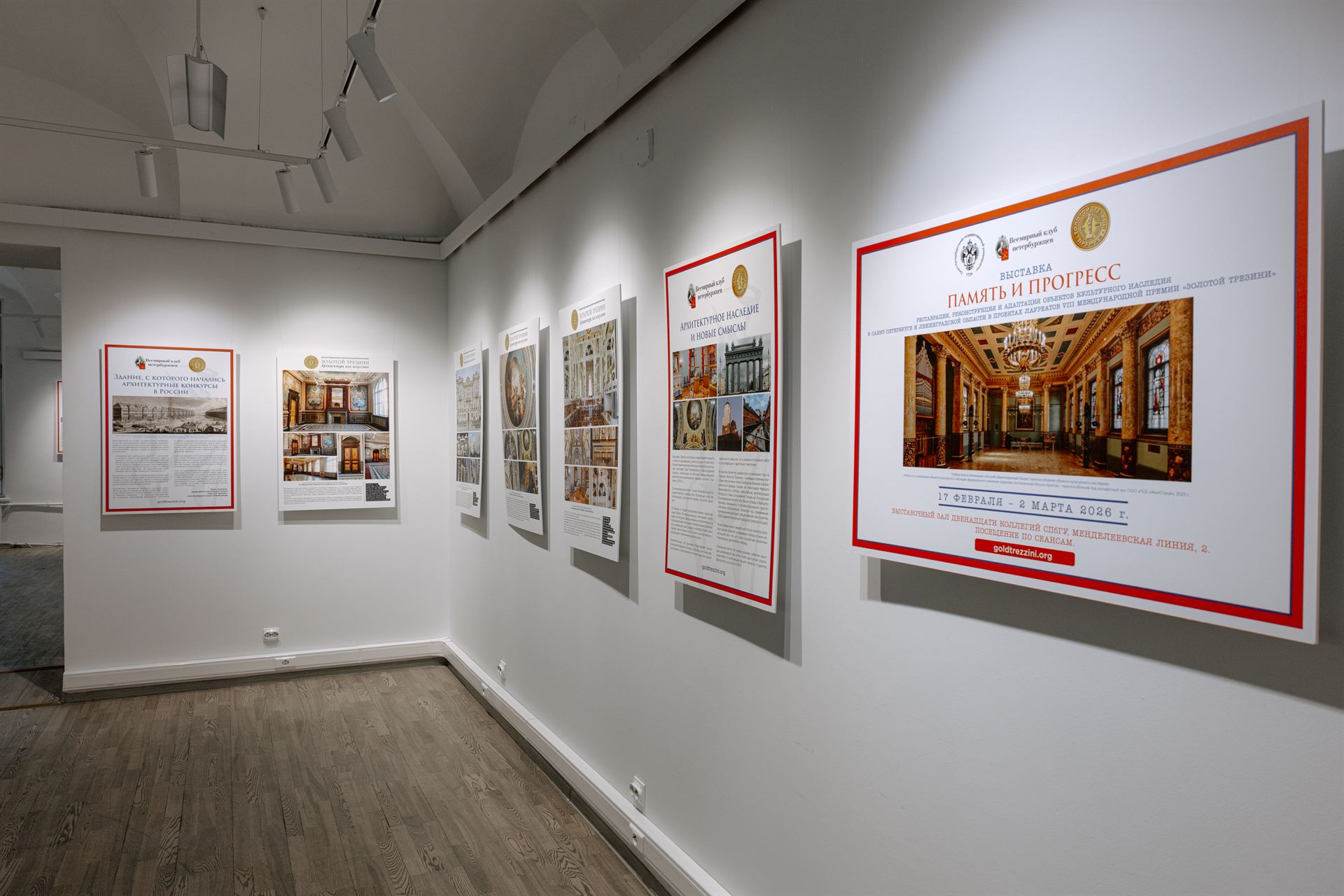 17 февраля в выставочном зале здания Двенадцати коллегий Санкт-Петербургского государственного университета состоялось торжественное открытие выставки «Память и прогресс». Экспозиция организована СПбГУ, Всемирным клубом петербуржцев и оргкомитетом Международной премии «Золотой Трезини».