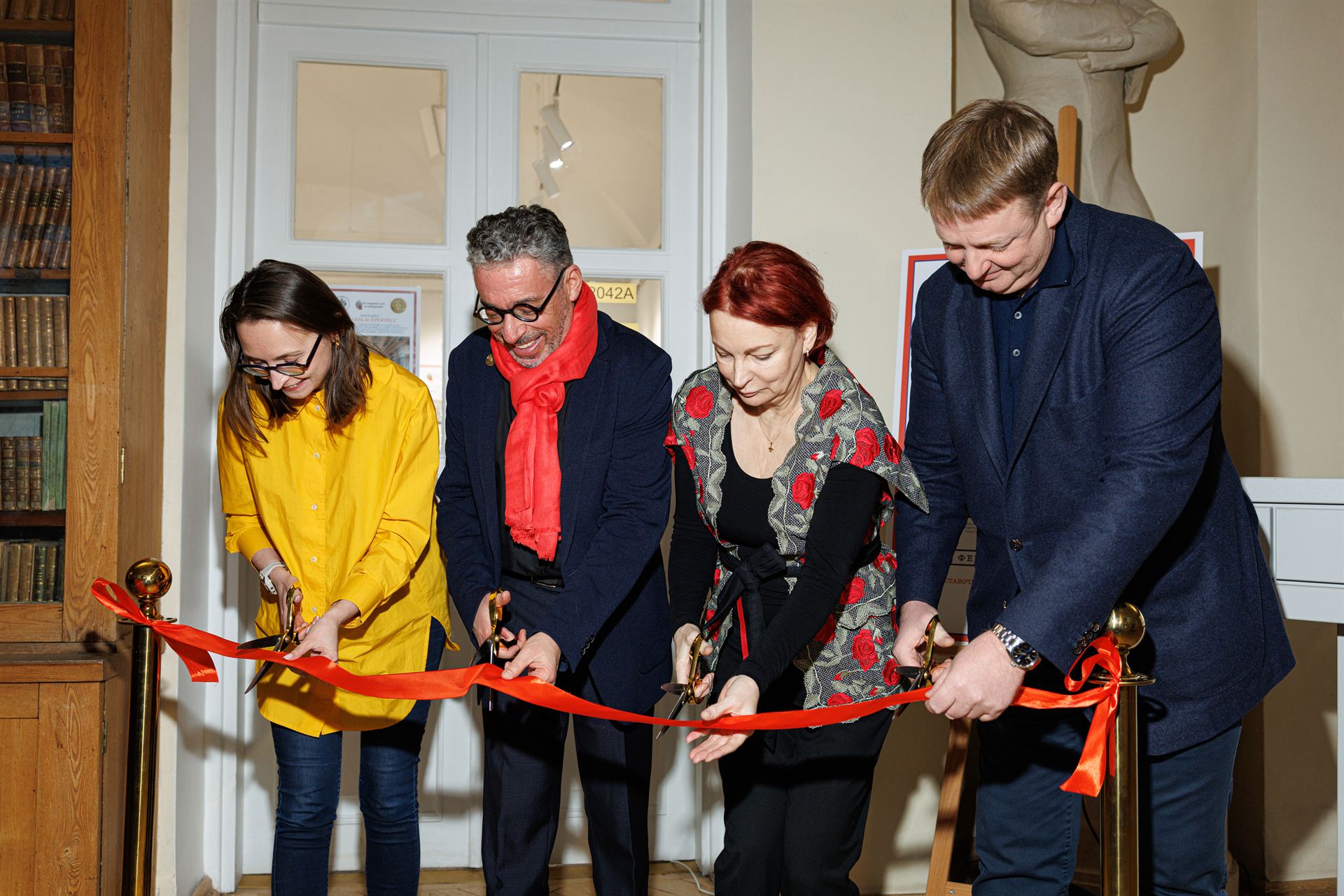 В церемонии открытия приняли участие первый проректор по академическим вопросам СПбГУ Анастасия Ярмош, председатель оргкомитета премии «Золотой Трезини» Павел Черняков, художественный руководитель Центра современного искусства им. Сергея Курехина Анастасия Курехина, генеральный директор ООО «ПСБ «ЖилСтрой» Александр Желиостов, а также студенты Университета – непосредственные участники выставки.