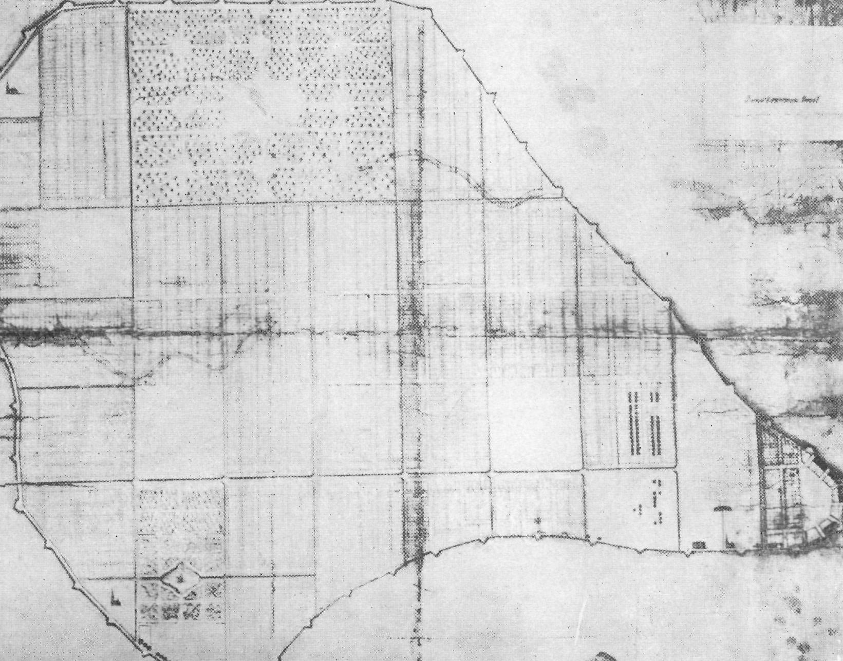 Рис. 1. Проект планировки Васильевского острова, утвержденный Петром I, 1715 г. Архитектор Д. Трезини. ЦГВИА, ф. 418, оп. 1, д. 22420