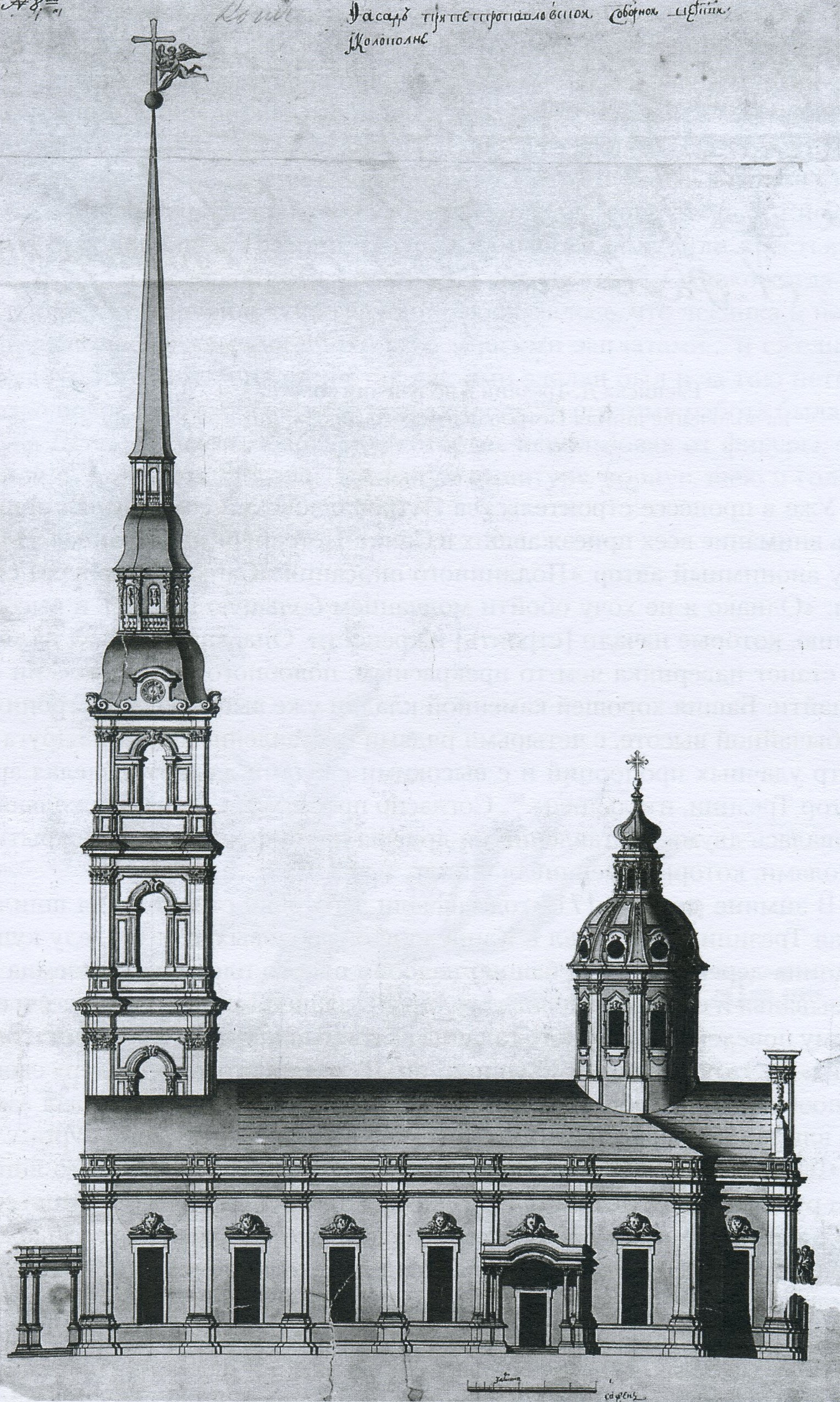 Рис. 2. Петропавловский собор. Чертеж Д. Трезини, 1710-е годы. Копия А. Коренева, 1767 г.