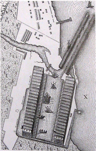 Рис. 6. Галерная гавань Гребного порта. Архитектор И. Коробов. Фрагмент плана Санкт-Петербурга 1753 года. Источник: Wikipedia