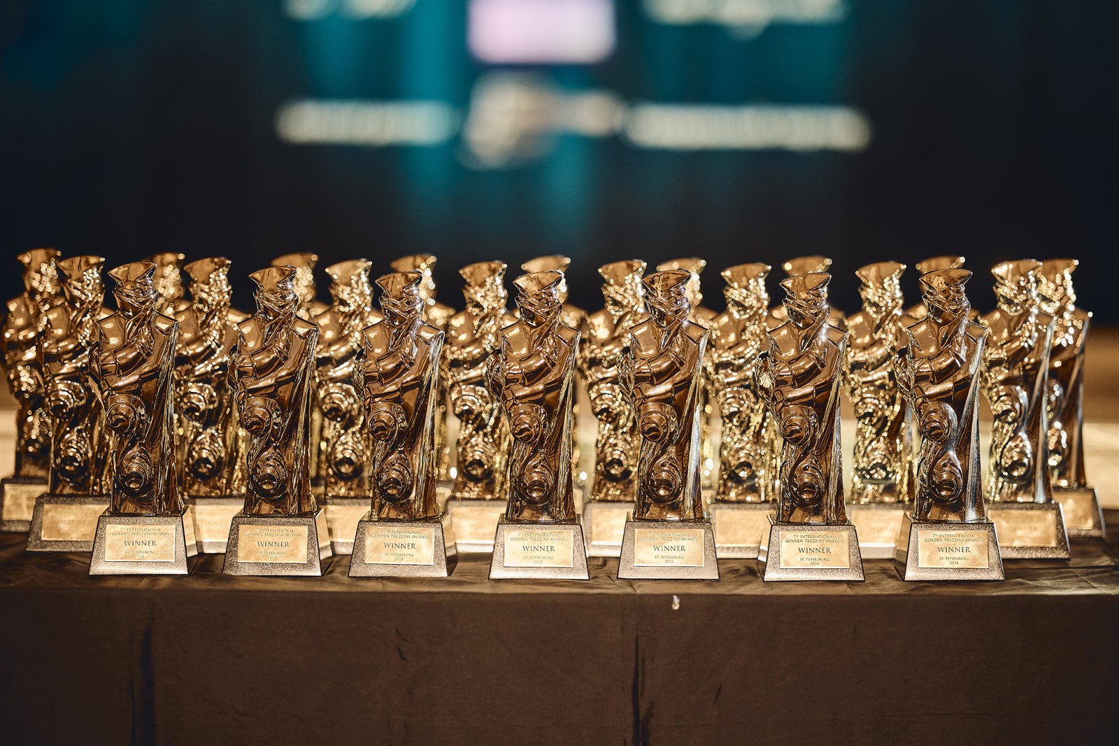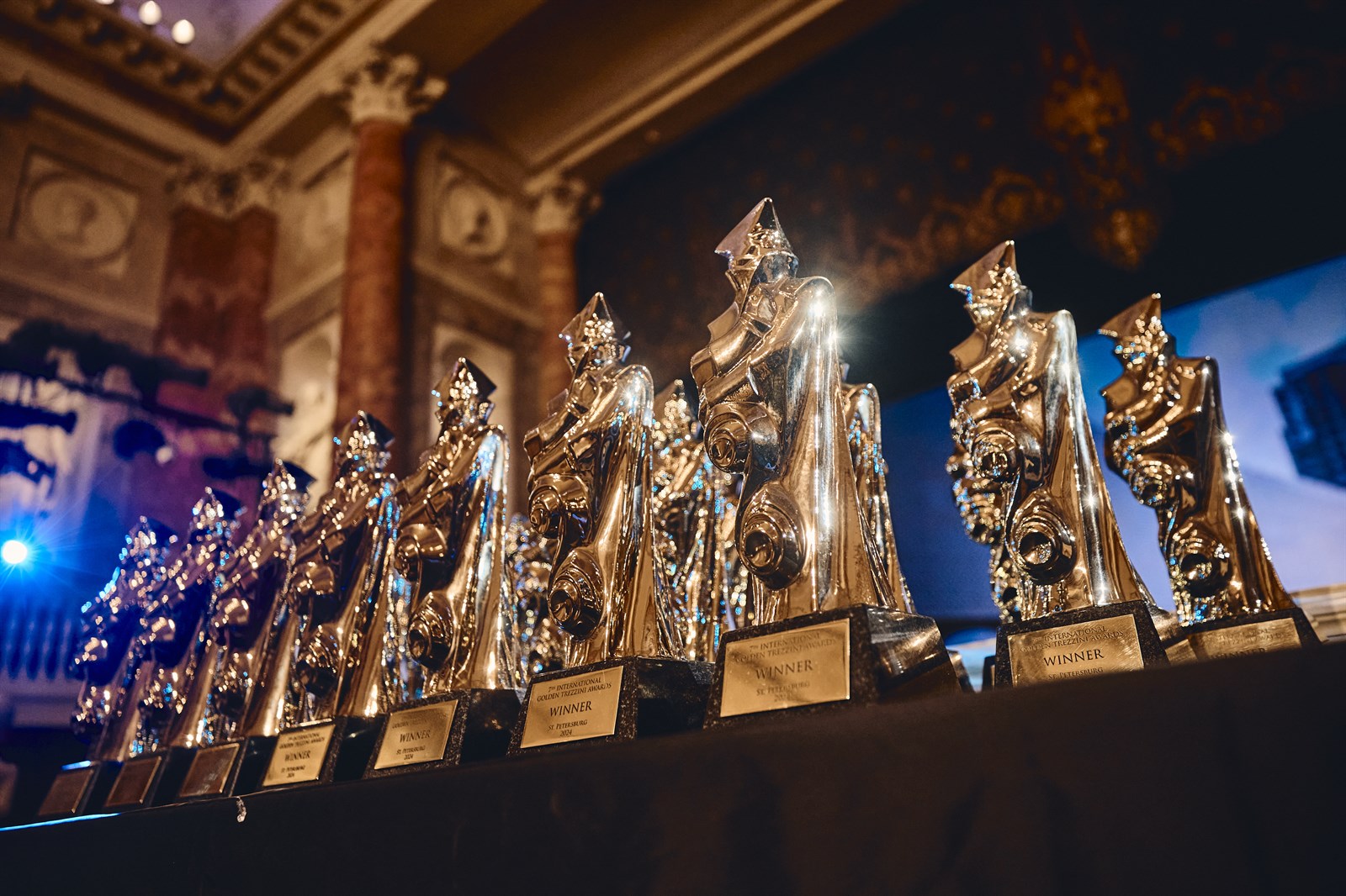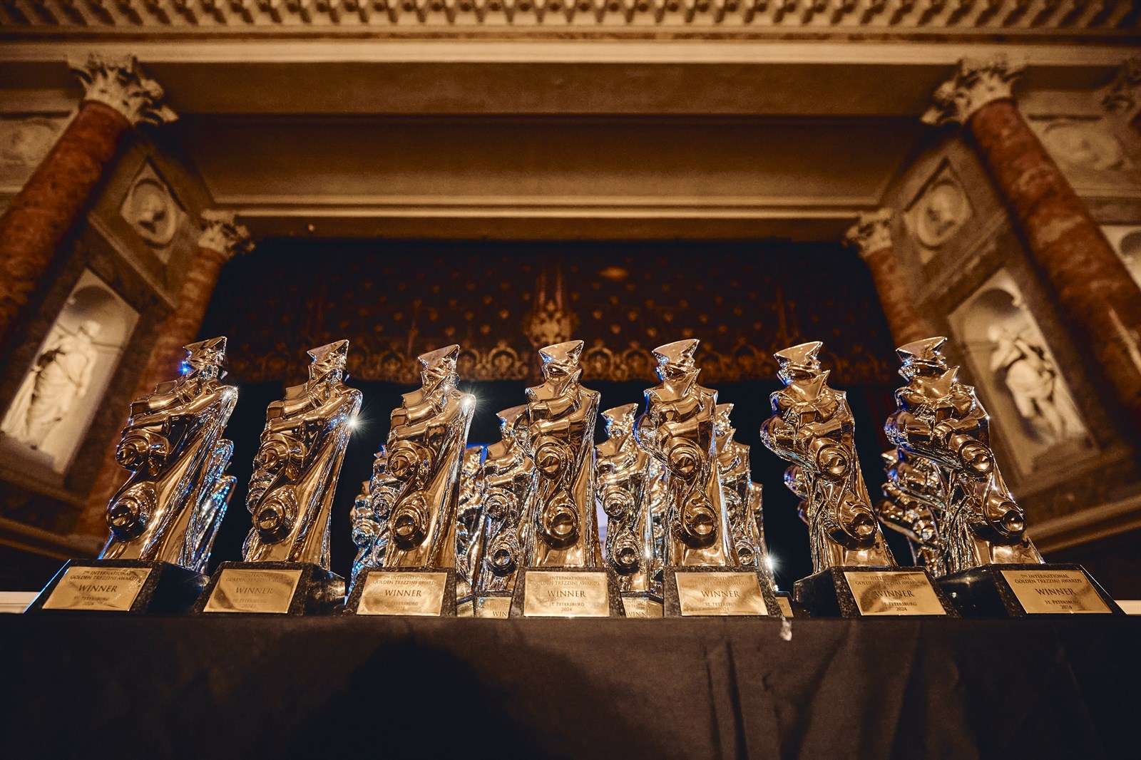 Статуэтки на церемонии награждения победителей премии «Золотой Трезини-2024»