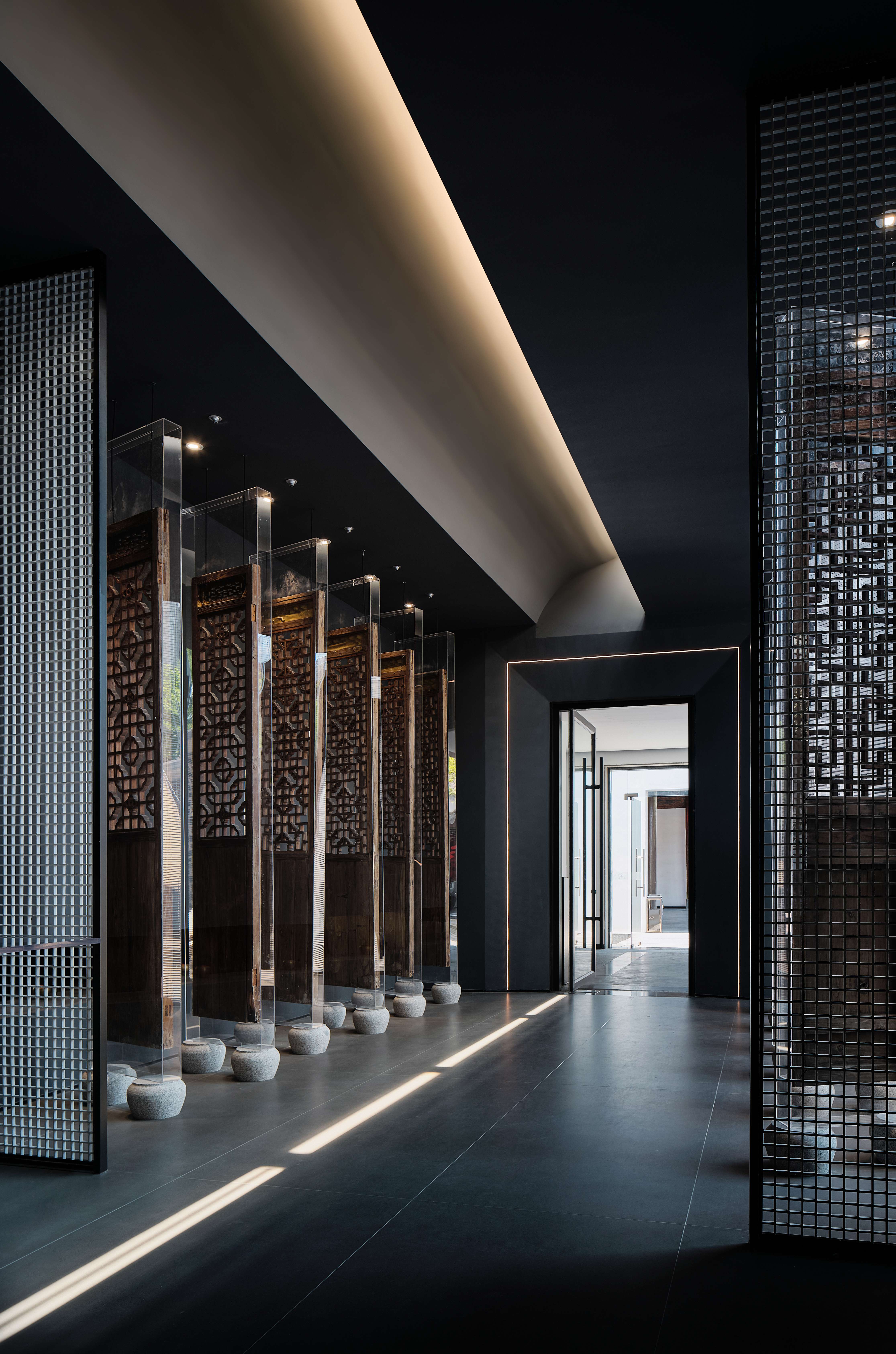 О проекте: Проект реализован на бывшей территории университета г. Чжэньцзян. Всегда хочется не только сохранить исторические места, но и придумать, как именно их можно использовать в современном мире. Авторы использовали оригинальные старинные двери в оформлении пространства: они установили их в акриловые панели и использовали получившиеся экраны. Прозрачный материал визуально расширяет пространство, а сами двери отдают дань традициям.