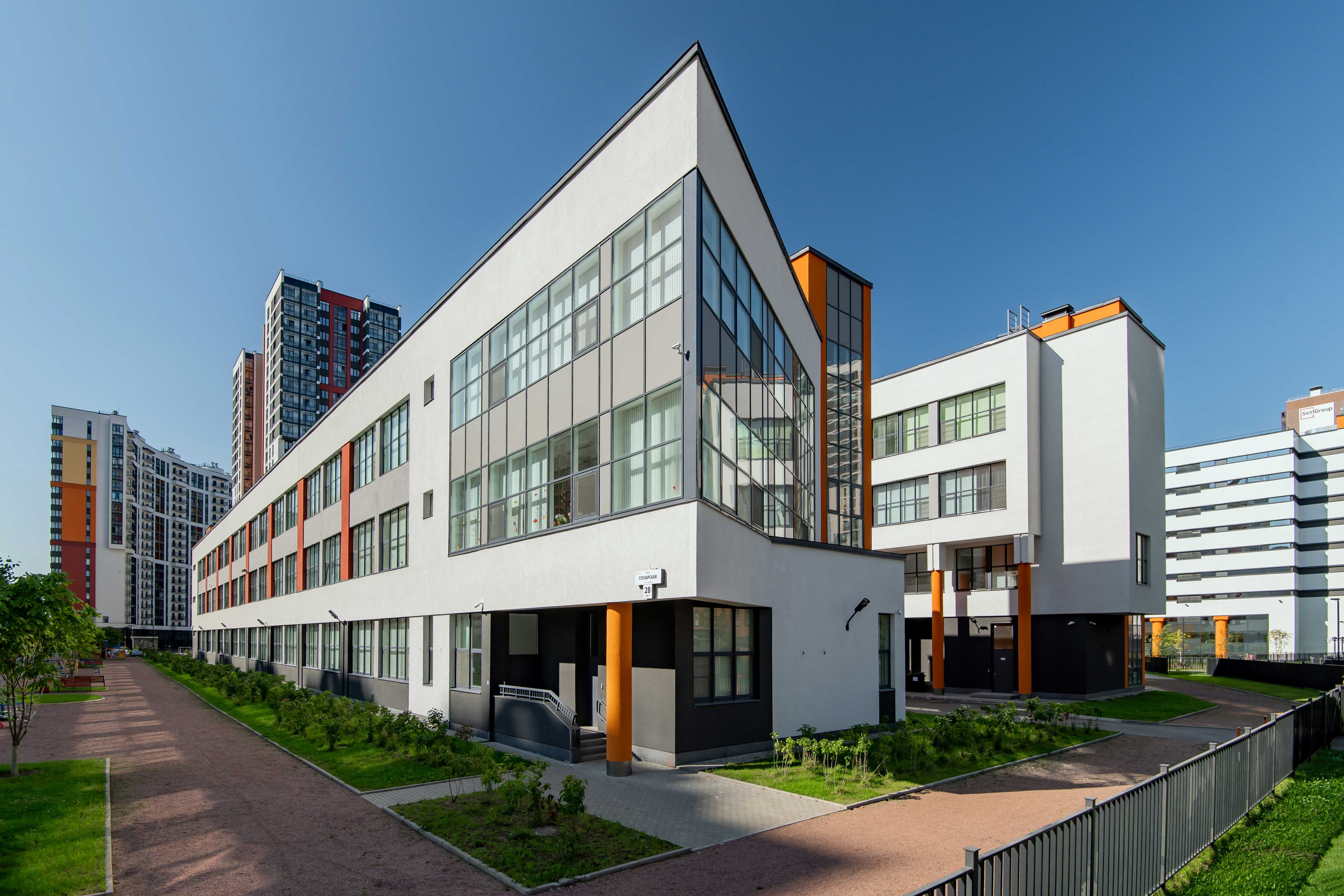 Здание общеобразовательной школы на 825 учащихся территориально входит в состав жилого комплекса Ultra City в Приморском районе Санкт-Петербурга.