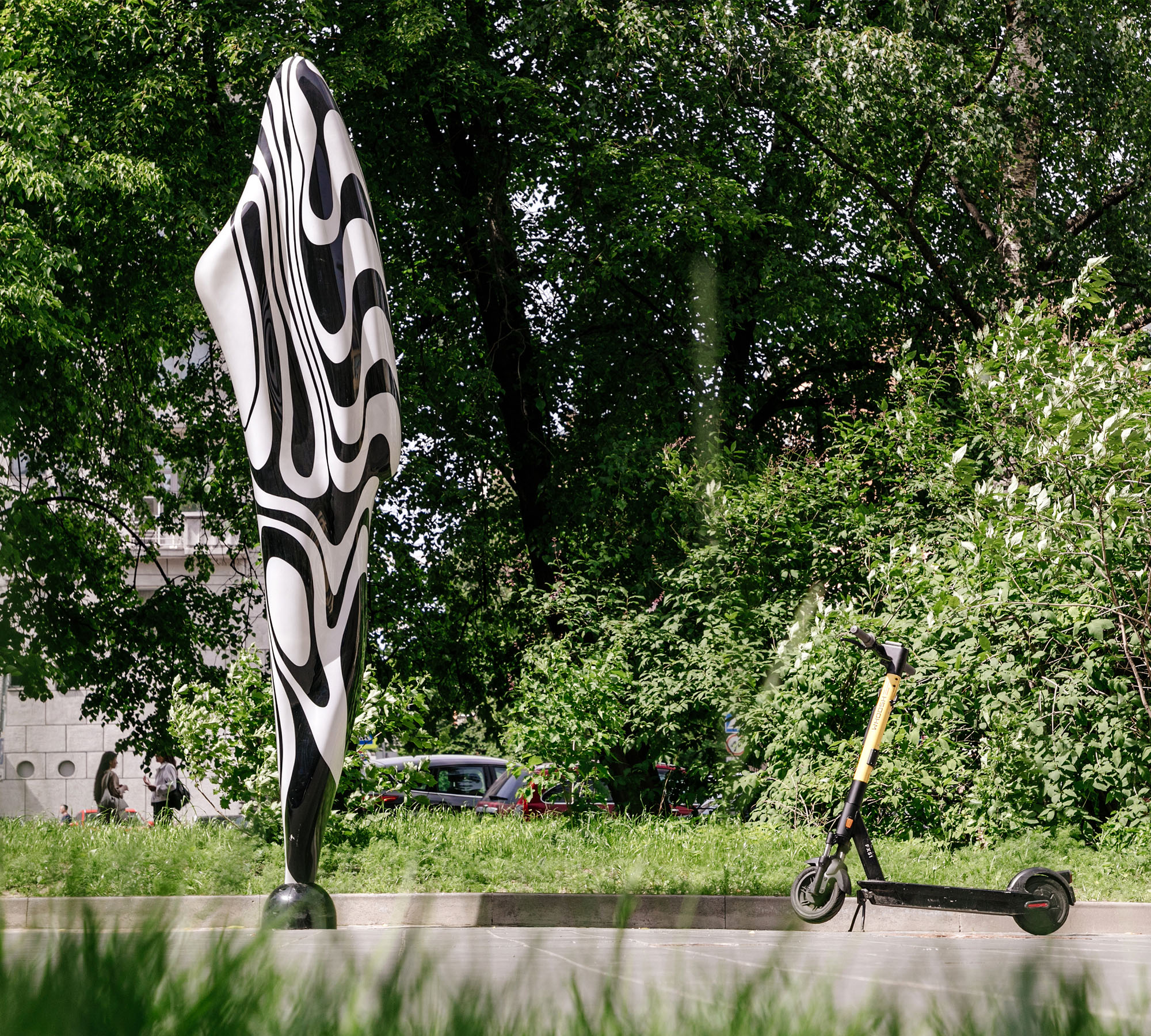 Основой дизайна стали свет и цвет. Длинные изогнутые скамейки с подсветкой и фонари необычной органической формы были изготовлены специально для этого пространства. Сидения скамеек в виде клавиш – оммаж концертам в клубе "A2". Фонари светятся разными цветами, которые можно изменить, скачав приложение с QR-кода на телефон. Помимо создания центральной световой композиции, архитекторы проделали много незаметной работы: сделали покрытие, по которому удобно передвигаться представителям всех групп населения, восстановили газоны, организовали стоянку для велосипедов.