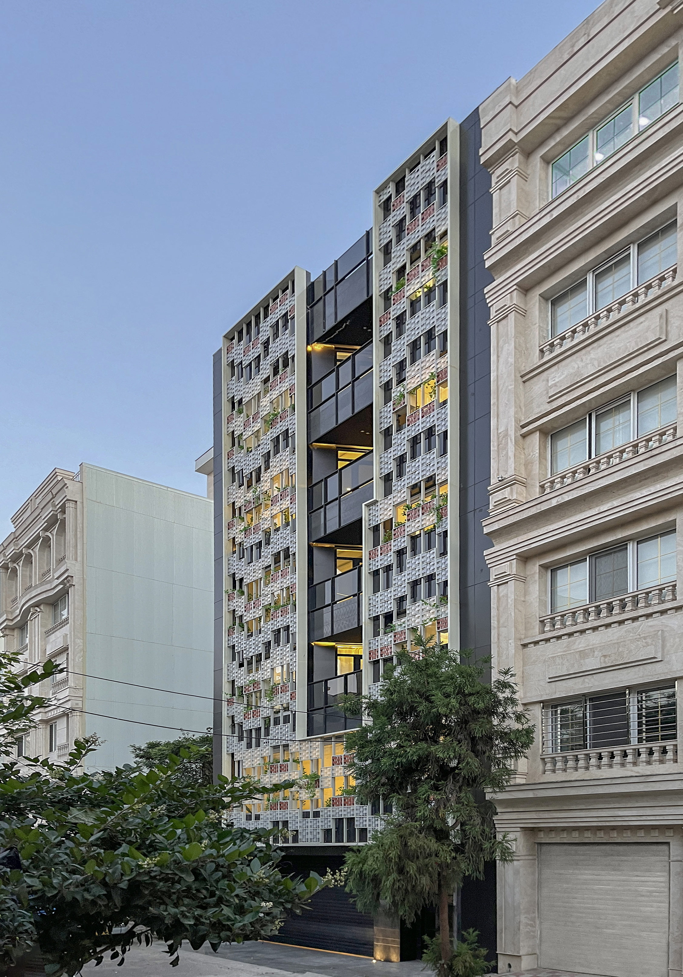 Описание проекта, предоставленное заявителем: Этот проект переосмысливает обычный фасад многоквартирного дома как поэтический диалог между светом, приватностью и традицией. Вместо того чтобы жильцы сами закрывали шторы, мы вынесли занавеску наружу, создав полупрозрачную плетеную оболочку, которая защищает частную жизнь, одновременно фильтруя дневной свет. Вдохновленные наследием плетения циновок в Гиляне, полосы плексигласа были переплетены, подобно деревенскому плетению, образуя деликатную, но современную вторую кожу. Между слоями этого фасада были расположены растения и балконы, предлагая жильцам более мягкую визуальную связь с городом. Геометрия остальной части здания была переработана в соответствии с логикой плетения, расширяя концепцию за пределы фасада. На первом этаже лестница была скорректирована для создания гостеприимного вестибюля, а крыша была превращена в сад, решая проблему нехватки открытого пространства в плотной городской застройке. В результате получилась квартира, которая превращает обычный куб в живой, дышащий организм.