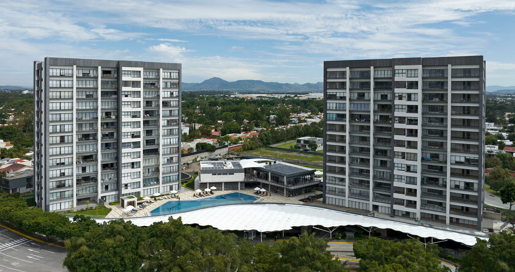 О проекте: Жилой комплекс существенно возвышается над окружающей застройкой. Авторы проекта точно знают, о чем мечтали местные жители, и предложили им все необходимое: зеленые пейзажи, уединение, развитую инфраструктуру и зоны отдыха. Жилой комплекс объединил в себе 4 здания, расположенных под углом друг к другу. Из каждого здания открываются виды на разные части города.
