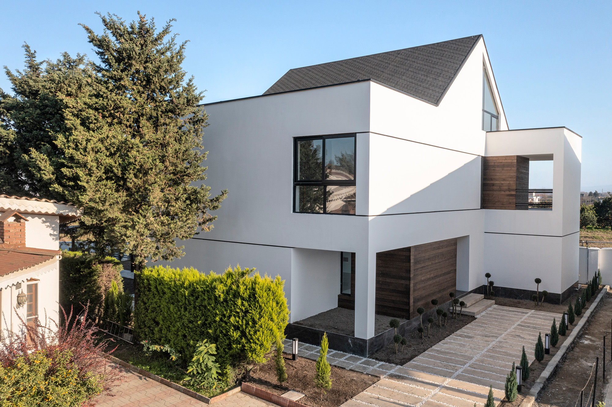 О проекте: Вилла возведена на участке площадью 500 м². Существующая застройка, в основном, представлена старыми частными домами. С северной и западной стороны участок граничит с апельсиновым садом, с восточной и южной стороны – с соседней виллой.