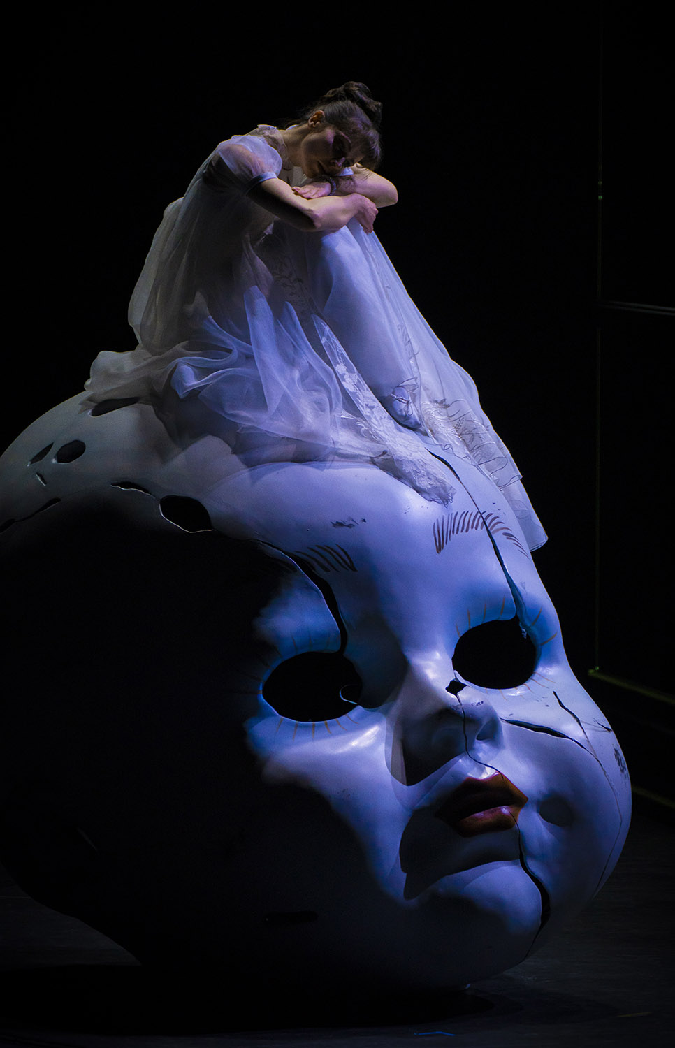 В основе пластического спектакля «Арбенин. Маскарад без слов» две пьесы М.Ю. Лермонтова – «Маскарад» и «Арбенин». Художник-сценограф Максим Обрезков вместе с режиссером Сергеем Землянским через пространство, движение, жест и пластику актеров передает жизнь великосветского общества в разных ее проявлениях. Здесь правит бал интрига, здесь сплетня ведет к гибели, здесь смещены границы дозволенного. Но это бал, маскарад, игра. Это мир всеобщий лжи и обмана. По словам режиссера Сергея Землянского, его спектакль про маскарад чувств и эмоций, где под маской можно скрыть страсть и страдание, ненависть, любовь, предательство, ревность. Лаконично-сдержанные пространство и костюмы Максим Обрезков решает в единой цветовой гамме, выделяя цветом главных героев - Арбенин в красном, Нина в белом, баронесса Штраль в зеленом. Остальные в огромных кукольных масках, под которыми стирается индивидуальность.