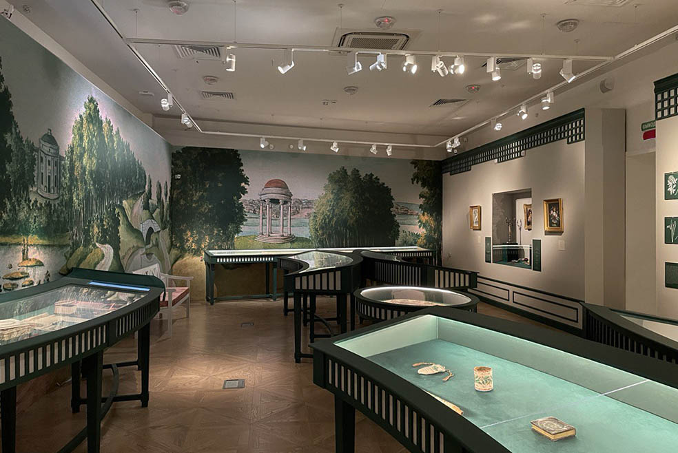 Оформление выставки создано таким, чтобы помочь зрителю перенестись в в романтическую атмосферу, почувствовать ароматы цветов, услышать пение птиц, вспомнить свою первую влюбленность, сравнить эти ощущения с эмоциями людей той поры… В фондах Исторического музея есть рисунки А.Т. и П.А. Болотовых, они и явились главным источником вдохновения для оформления выставки.