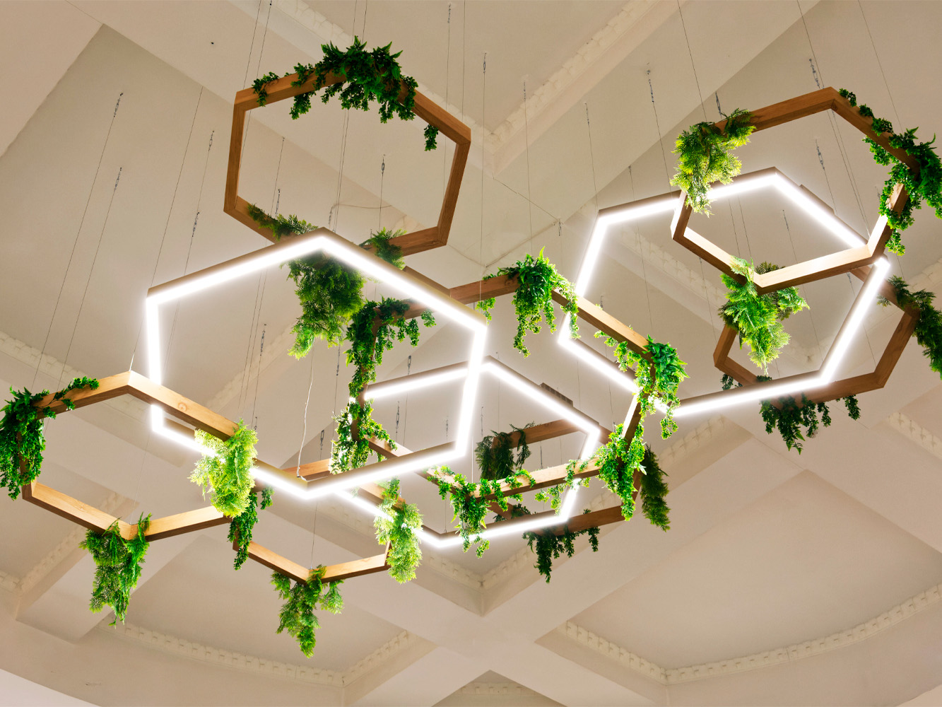 В самарском торговом центре «Аврора Молл» установили потолок и светильники в форме сот. Этот нестандартный подход ярко продемонстрировал, как креативное решение может преобразить пространство, придав ему современный и стильный вид.
