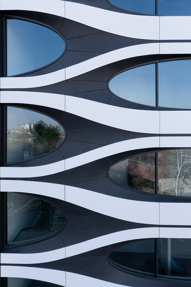 B73 стало одним из немногих зданий на территории Болгарии, построенных из сплошного профиля с применением технологии термоформования. Фасад напоминает белую поверхность с выполненными через определенные промежутки прорезями. В месте размещения лестничных колодцев прорези смыкаются, образуя подобие распростертых крыльев.