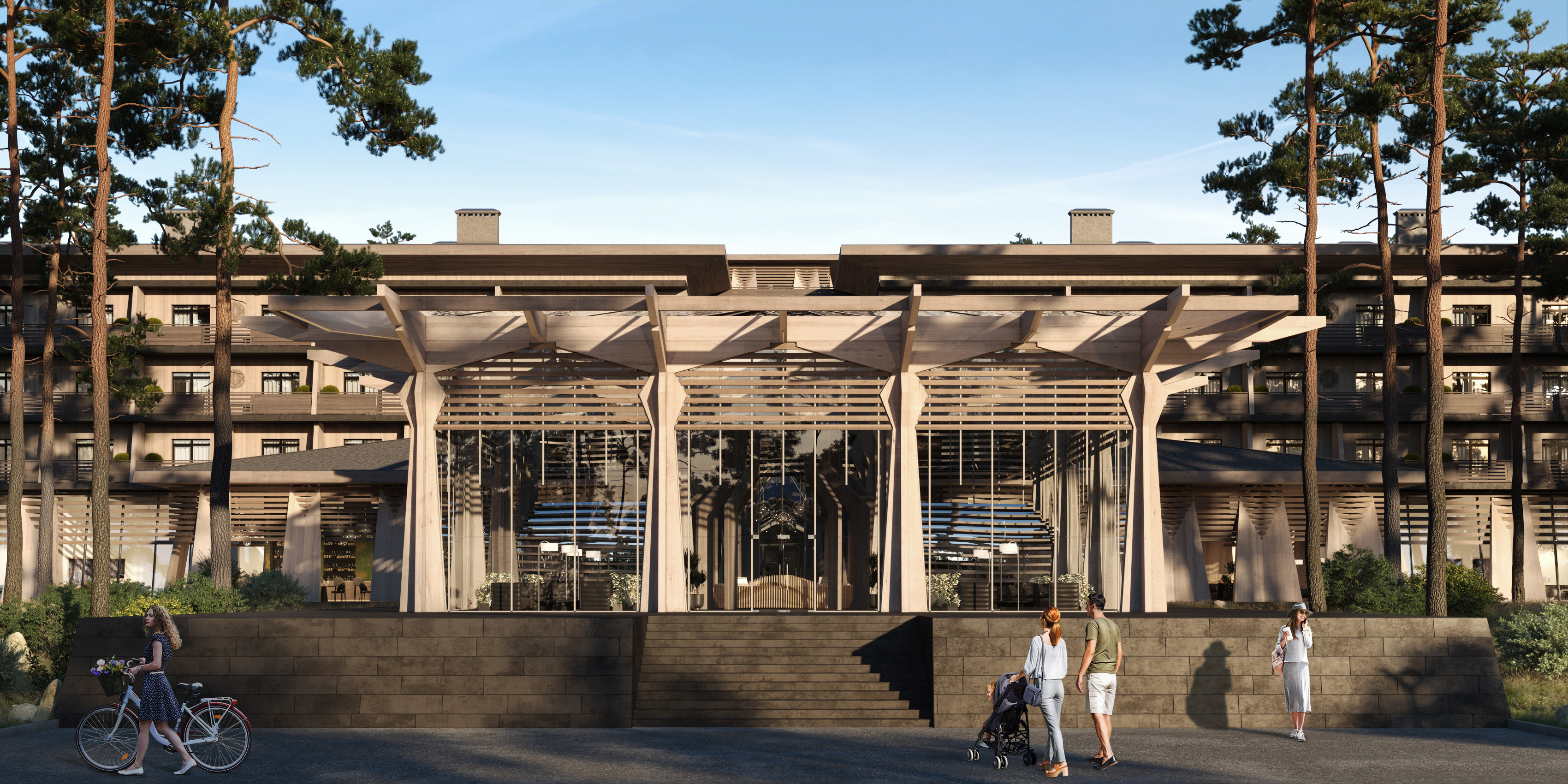Гостиничный комплекс включает в себя номера «Люкс» с видами и «Делюкс», отдельно стоящие объемы входного вестибюля, лобби-бара, клубной гостиной и объем физкультурно-оздоровительного комплекса с бассейнами, саунами, тренажерным залом.