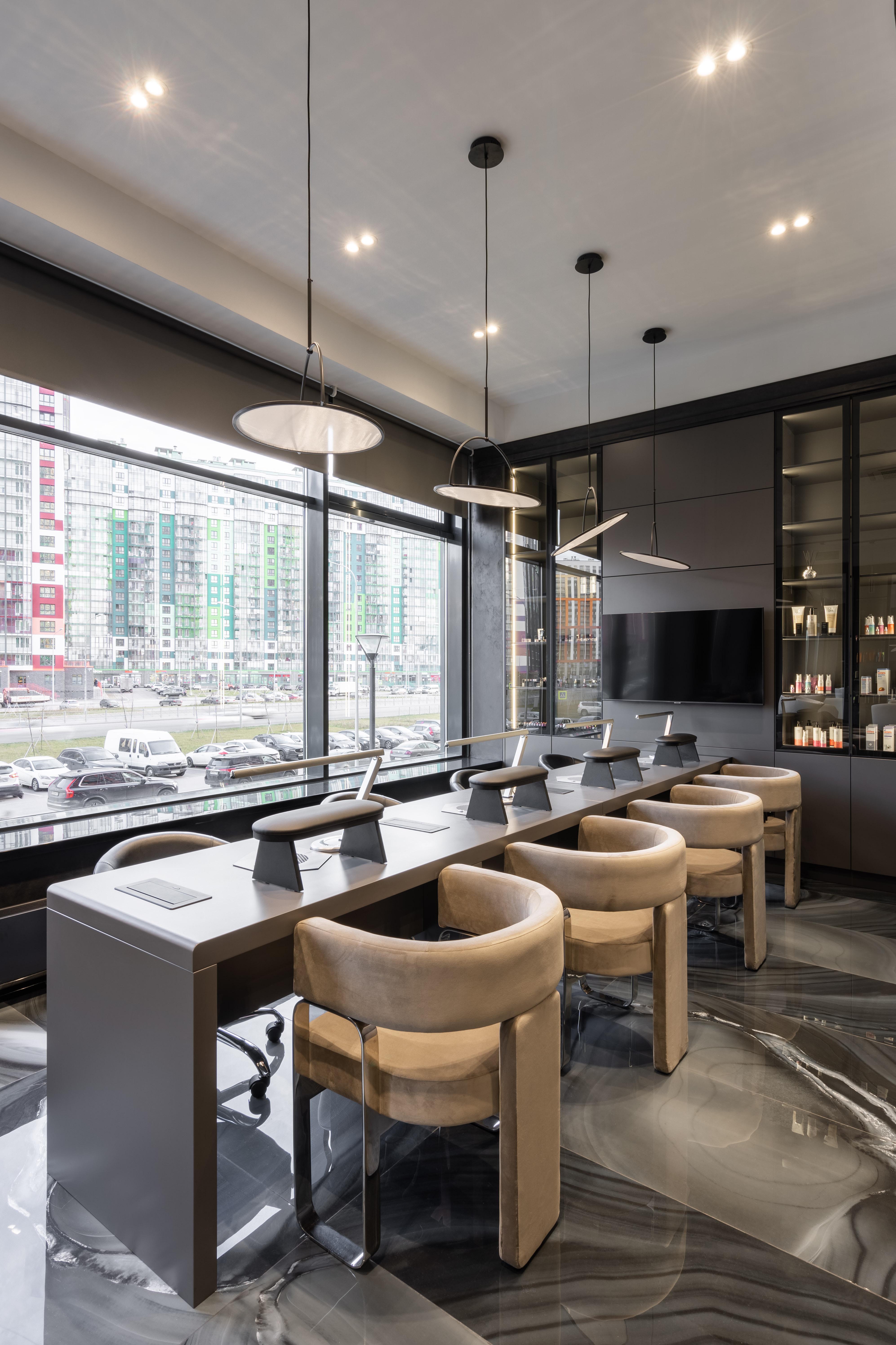 Всю корпусную мебель выполнило мебельное ателье Tetraplace по эскизам авторов интерьера. Мягкая мебель, а именно маникюрные кресла для гостей, педикюрные кресла, диван в зоне ожидания выполнило также по эскизам In2design мебельное производство Россо дизайн. Проект был согласован в начале 2021 года, а реализован уже в конце 2021 года - и с ноября 2021 года салон красоты Barbari принимает своих гостей.
