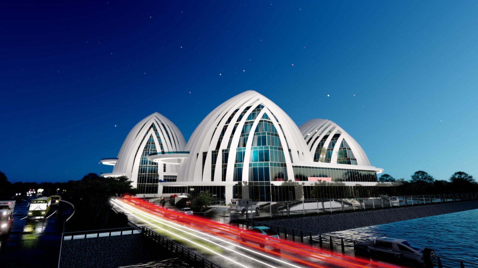 Своей формой здание, расположенное недалеко от Манильского залива, обязано местному моллюску. Поскольку море – место зарождения жизни, в проектной концепции использованы ассоциирующиеся с ним цвета и формы. Палитра морских оттенков и жизнерадостный дизайн способствуют улучшению психического и психологического состояния пациентов, а жалюзи защищают от палящего зноя и обеспечивают естественную вентиляцию.