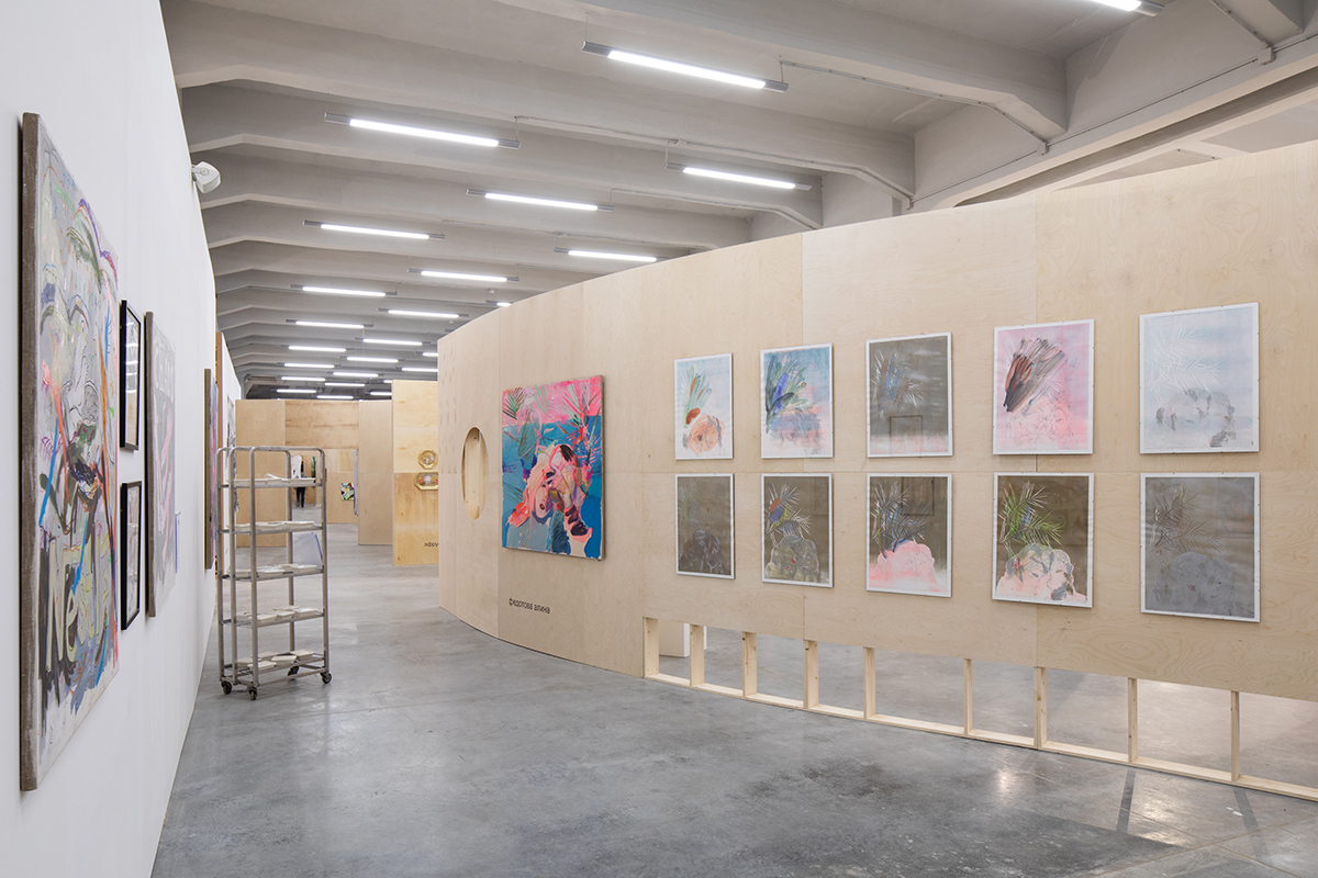 О проекте: Архитектура ярмарки уподоблена органической форме, свободно растекающейся по пространству зала. Она вместила 32 галереи, более 50 независимых художников и институций.