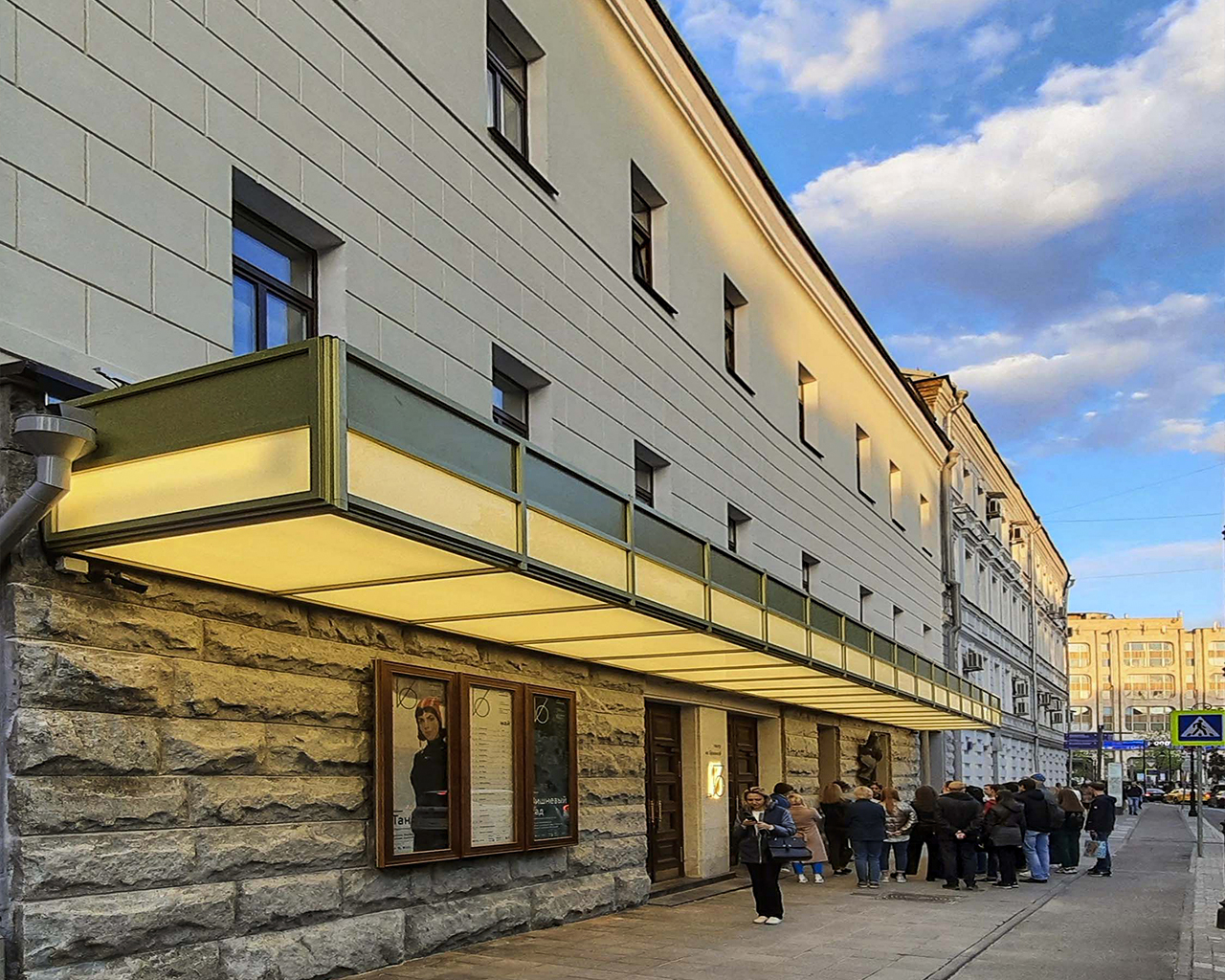 О проекте: Здание театра состоит из примыкающих объемов нескольких исторических построек XIX-XX вв. Постройка представляет собой ОКН регионального значения, объединяющий городскую усадьбу Голицыных - доходные владения М.С. Романова и Общества для пособия нуждающимся студентам Московского императорского университета (арх. В.П. Загорский, Н.Д. Струков, И.И. Поздеев), жилой флигель с концертным залом «Романовка» - доходный дом с конторами (арх. Н.Д. Струков, И.И. Поздеев).