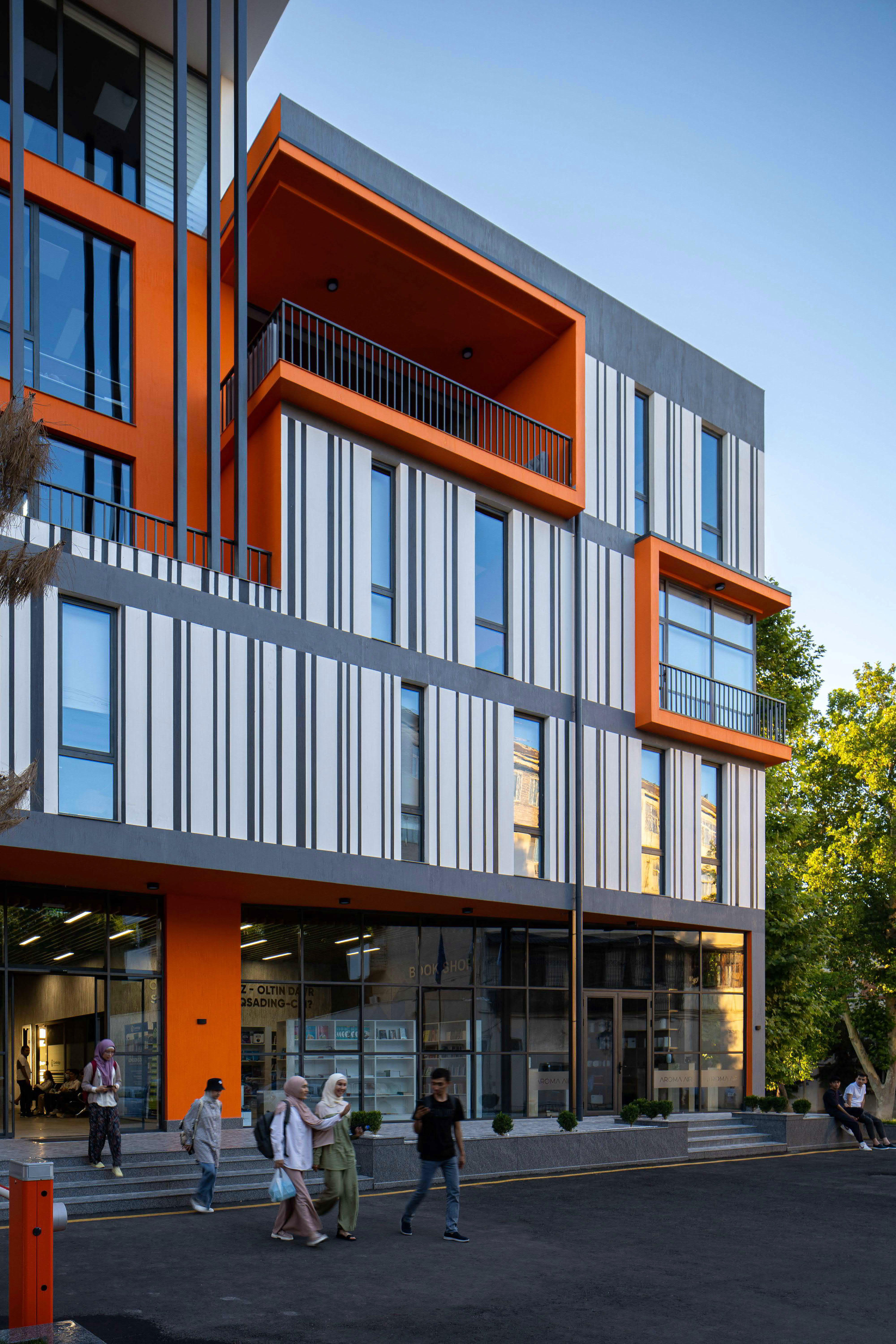 Описание проекта, предоставленное заявителем: Проектом предусмотрено здание пятиэтажного учебного центра. Определенный вид объекта был согласован с заказчиком с самого начала. Нашей общей целью было выделение архитектуры здания на фоне окружающих домов. По форме и цветовому решению здание похоже на детскую игрушку, которую можно разобрать и собрать заново, отсоединить часть и снова добавить. Главный вход в здание расположен прямо по ведущей к зданию дороге. Вертикальные линии на фасаде напоминают штрих-код и придают зданию запоминающийся вид.