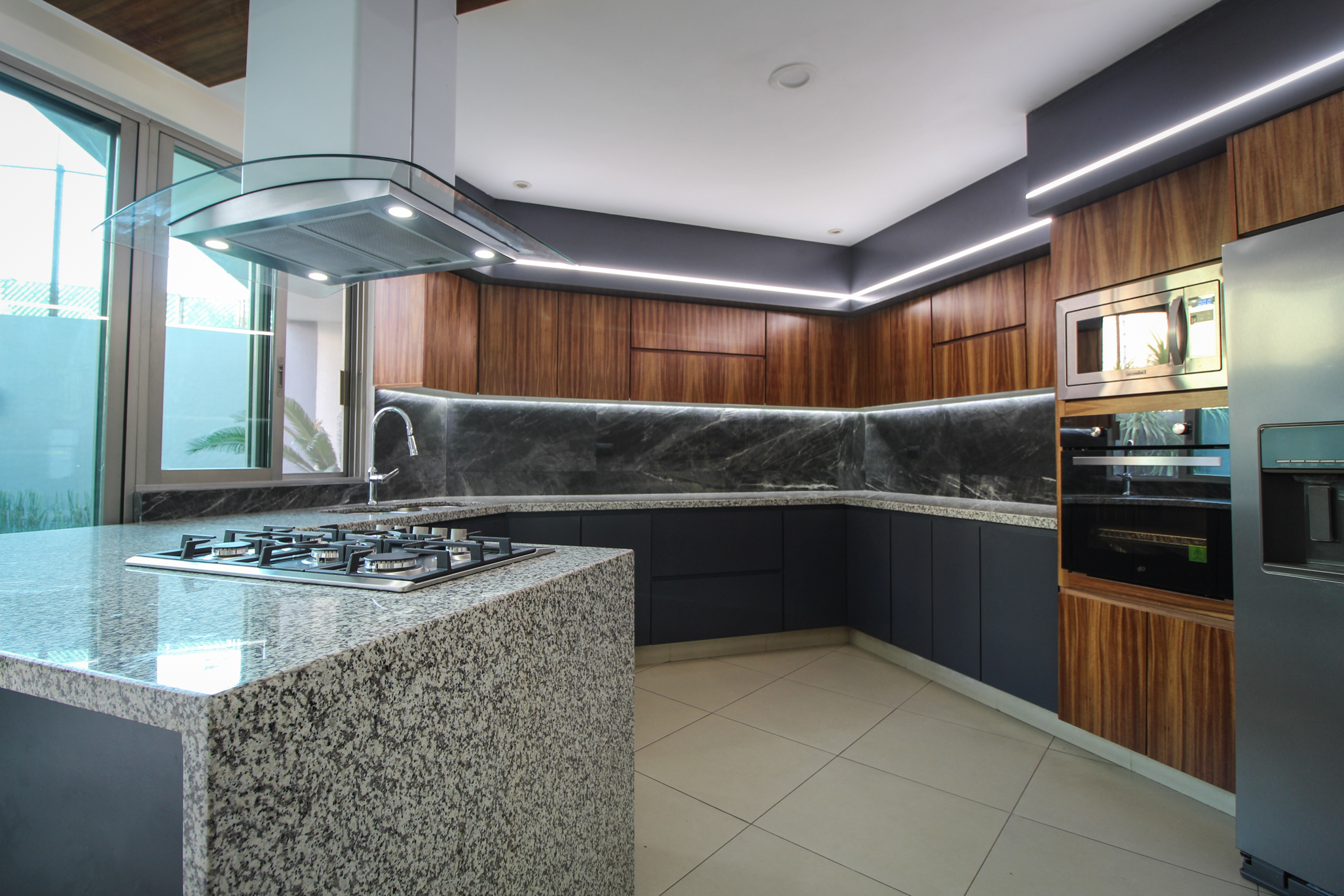 Опроекте: Дом расположен в южной части г. Морелия, всего в двух шагах от пр. Камелинас. Ремонт кухни был выполнен по запросу заказчика, который хотел обновить эту часть своего дома и сделать ее более удобной и функциональной. Кухня является визуальной изюминкой всего дома, ведь ее видно от входа в здание.
