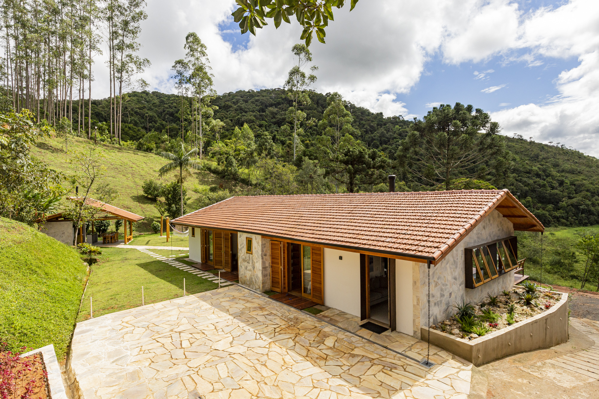 Заказчик купил участок с двумя законсервированными зданиями и обратился к архитекторам, поскольку хотел превратить заброшенный основной дом в загородную виллу класса люкс. Получившаяся вилла изящно вписывается в природный ландшафт – в частности, благодаря использованию натуральных и современных материалов.