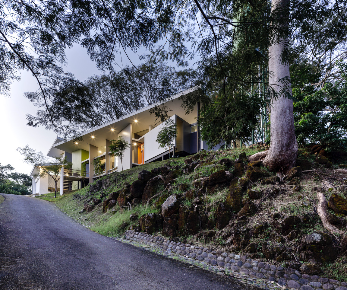 Дом проектируется в сельской местности на вершине холма, обращенного к океану, в окружении 6 таких взрослых деревьев. Здание имеет вытянутую форму, благодаря чему из всех его помещений открывается вид на океан, а открытый сад объединяет сразу три пространства: гостиную, кухню и керамическую студию. Облицованный черной плиткой бассейн отражает высокие катальпы, которые становятся неотъемлемой частью интерьера.