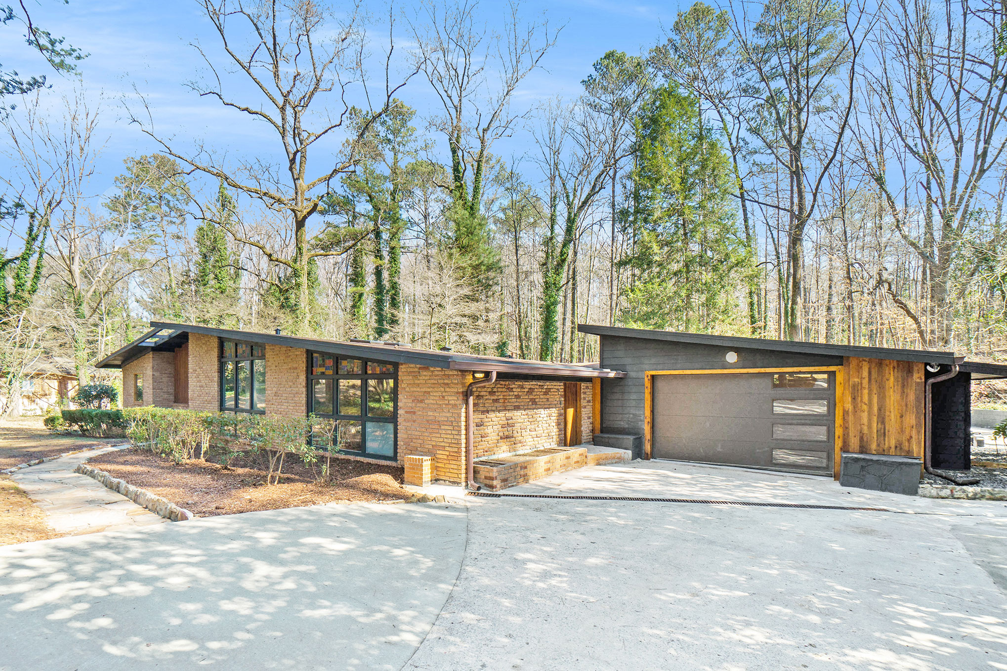 О проекте: Частный дом с четырьмя спальнями и тремя ванными комнатами 1959 года постройки расположен среди леса в набирающем популярность районе Бичер-Хиллз в юго-западной части Атланты.