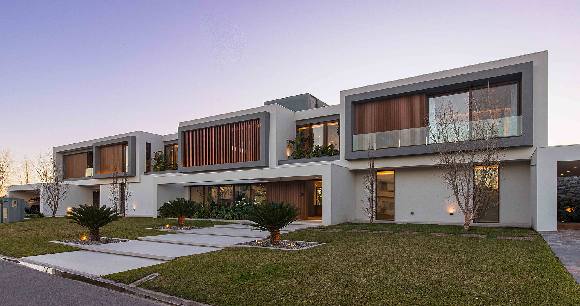 Фасад выполнен с использованием деревянной облицовки и больших остекленных поверхностей, создающих динамическую игру света и тени в течение дня. Основной принцип проекта — организация жизни внутри и снаружи дома; это реализовано через просторные «парящие» балконы и спокойную зону с бассейном, которые выгодно обрамляют окружающий ландшафт. Внутри помещения отличаются большими, светлыми пространствами с высокими потолками, а отделка и выбор материалов отражают внимание к деталям. Продуманная планировка обеспечивает оптимальное движение по дому и функциональность, адаптированную к современному образу жизни.
