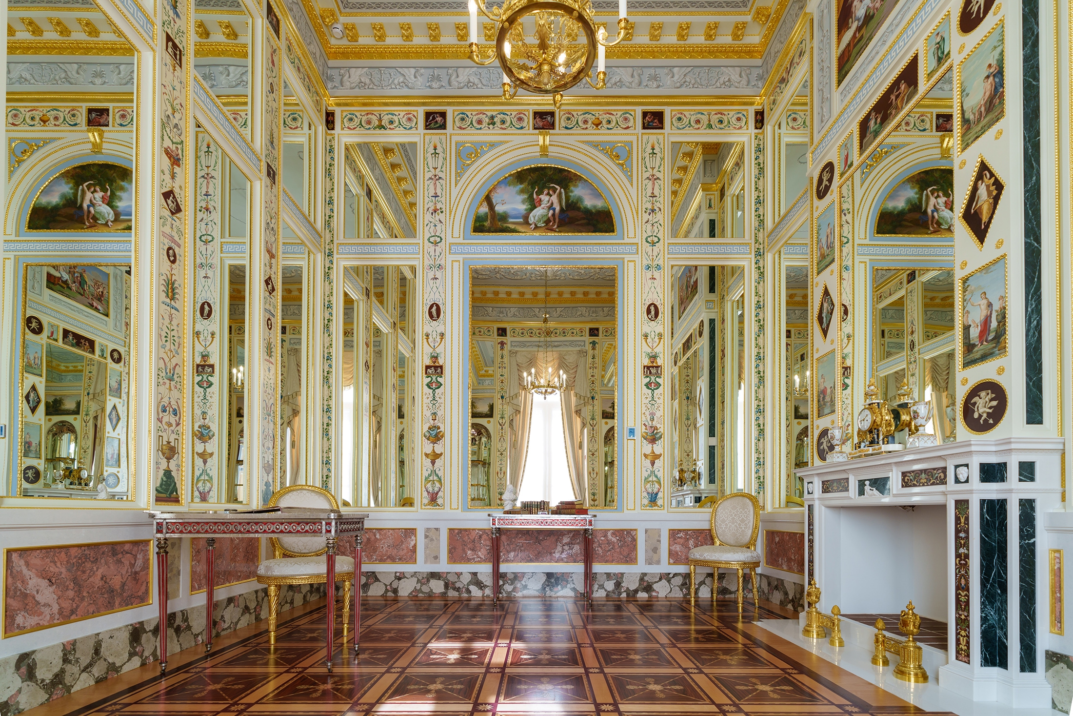 В ходе беспрецедентного проекта, осуществленного при поддержке ПАО «Газпром» в 2019–2024 гг., были воссозданы восемь помещений: Китайский и Купольный залы, Синий («Табакерка»), Серебряный и Зеркальный кабинеты, Опочивальня, Рафаэлевская и Туалетная комнаты. В качестве основы для воссоздания шедевра XVIII в. выступили архивные документы, описания, акварели, гравюры, автохромы, выполненные в 1917 г., и фотографии довоенного времени, а также подлинные сохранившиеся фрагменты декора.