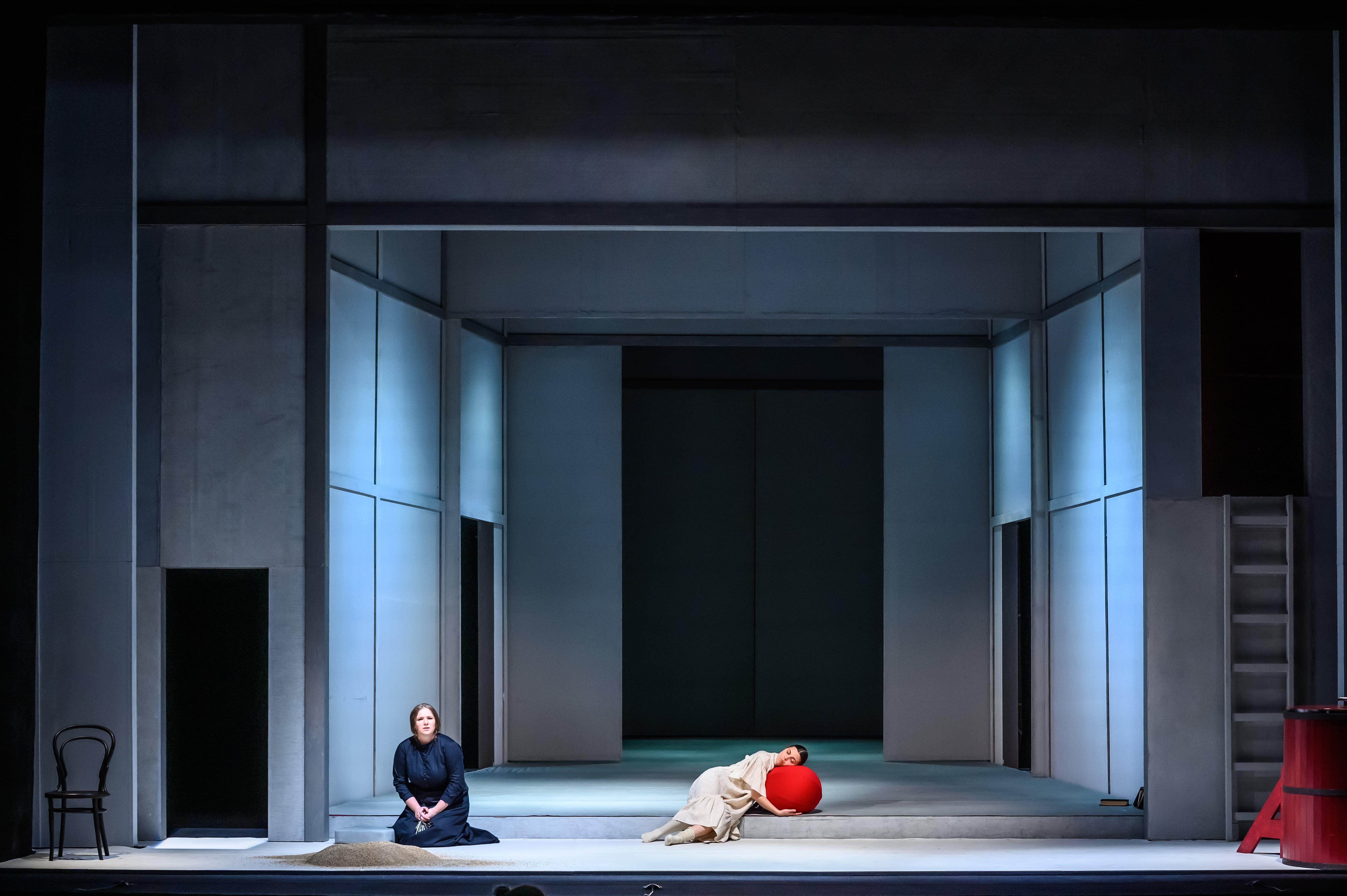 Пространство-павильон как труба, уводящая вдаль, засасывающая всё в чёрный квадрат времени. Опустошенный дом, в котором ничто не может удержаться на месте, все исчезает и сметается. Сценография - белый павильон с алым цирковым полом, который в наклоне, под определенным углом задает движение и пластику артистам. Пространство олицетворяет собой как дом так и детскую комнату Раневской. Мягкий свет, проходящий сквозь стены, придает ощущение кокона, которое сменяется в контровом свете и превращается в стеклянную клетку, просвечивая каркас стен. В финале появляются срубленные ветки похожие на срезанные волосы Раневской и Ани (сцена в спектакле). Театр в театре. Стены на подобие японских дверей являются то кулисами, то отъезжают, раскрывая слой за слоем. Сцена бала во время торгов решена в японских костюмах, и весь павильон меняет свой цвет в зависимости от того, какой костюм на Раневской.
