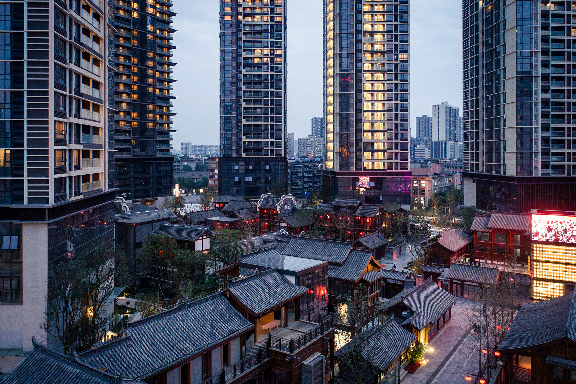 Опроекте: Очередная попытка совместить жилую и коммерческую функцию на одной площадке. Высотные здания по периметру участка предназначены для проживания, а коммерческие объекты занимают пространство между ними, образуя территорию внутреннего двора. Зона отдыха в духе культуры Ба-Шу перекликается со старыми районами города.