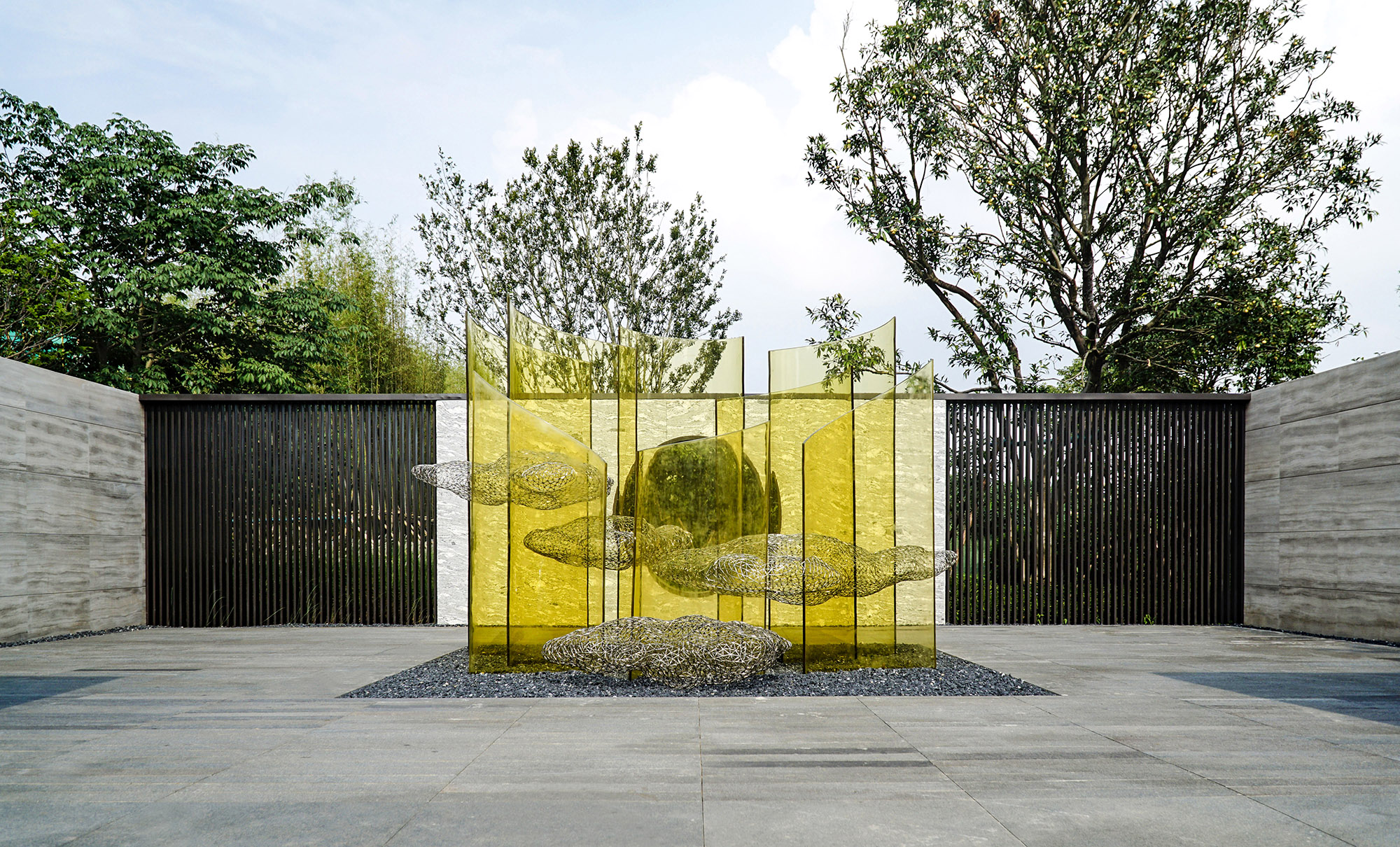Опроекте: Автор предлагает вниманию зрителей свое видение восточных мотивов и использует архитектурные элементы, чтобы подчеркнуть выразительность этой работы. Место для установки инсталляции выбрано неслучайно – работа призвана оживить внутренней двор старомодного культурного центра. Напротив входа расположен объект «Изумруд», который в сочетании с искусственным дождем идеально дополняет проволочные облака.