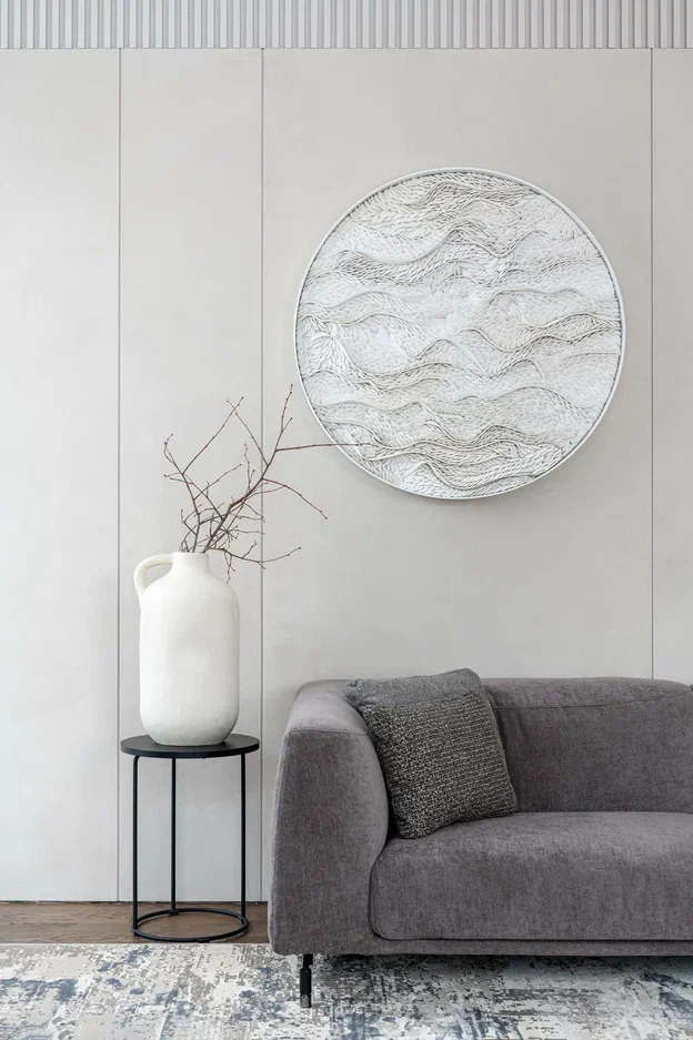 Арт-объект - панно из белой глины. Диаметр панно 1 м, вес около 170 кг. Детали слеплены вручную.