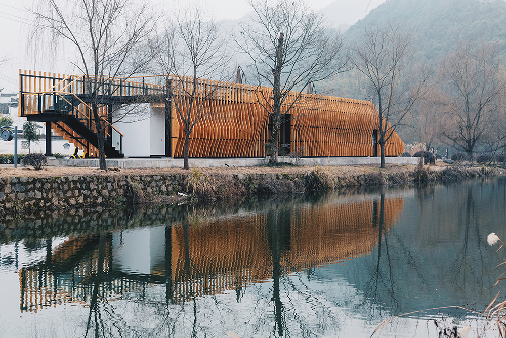 О проекте: Туристический центр построен в горах Хуаншань в Южном Китае. Здание вмещает информационную зону, выставочное пространство, служебные помещения, туалеты и обзорную площадку. В основе концепции – подход, предполагающий, что объект должен органично вписываться в окружающий ландшафт. Крыша здания, с которой удобно любоваться видом на окрестности, стала частью общественного пространства. Проект получил государственное финансирование, а большинство использованных при строительстве материалов было закуплено на местных производствах, чтобы минимизировать углеродный след.