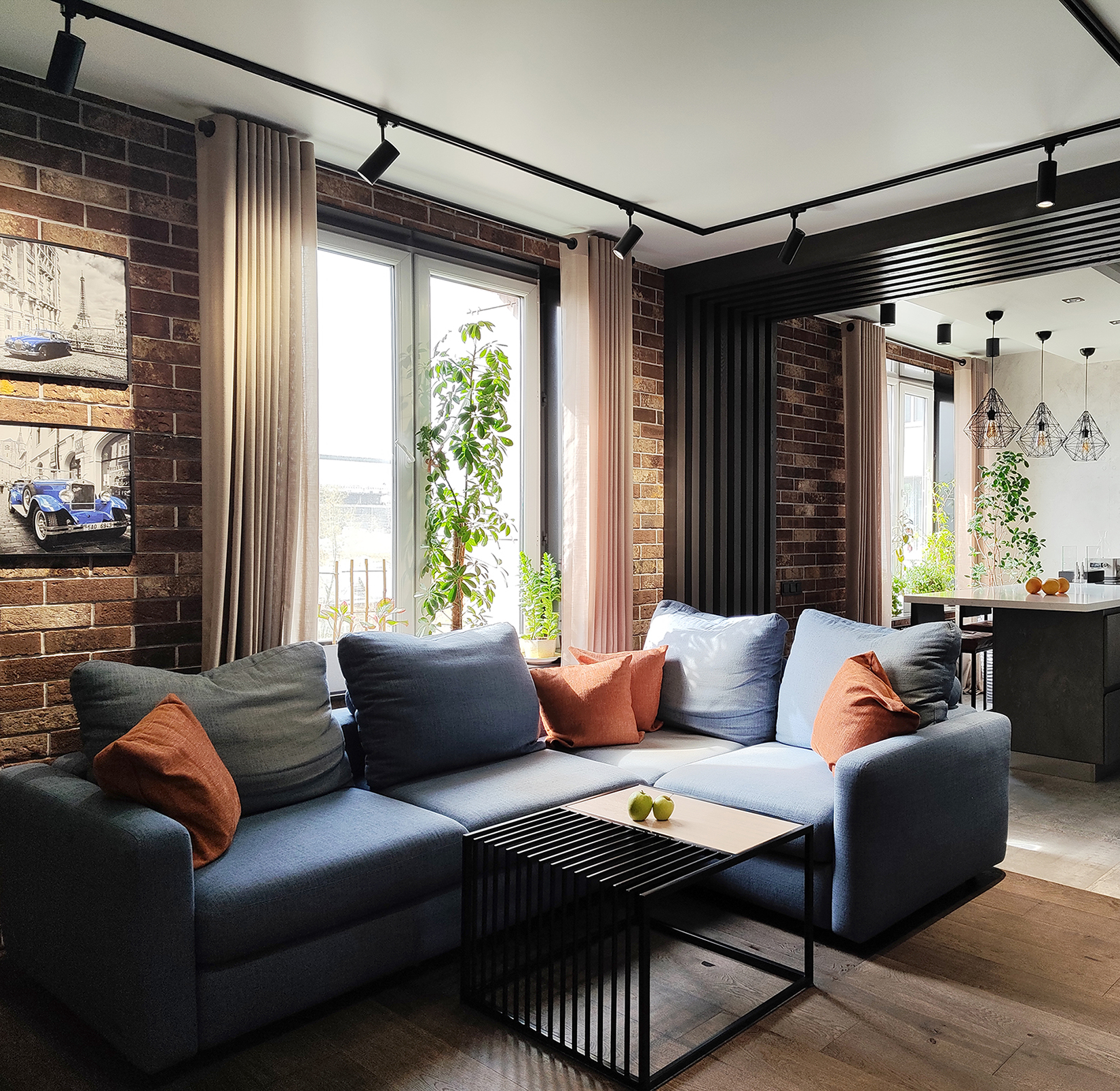 Современная квартира площадью 110 кв.м с изысканным и функциональным дизайном выполнена в стиле лофт. В интерьере преобладают теплые тона и натуральные материалы, создающие атмосферу уюта и комфорта.