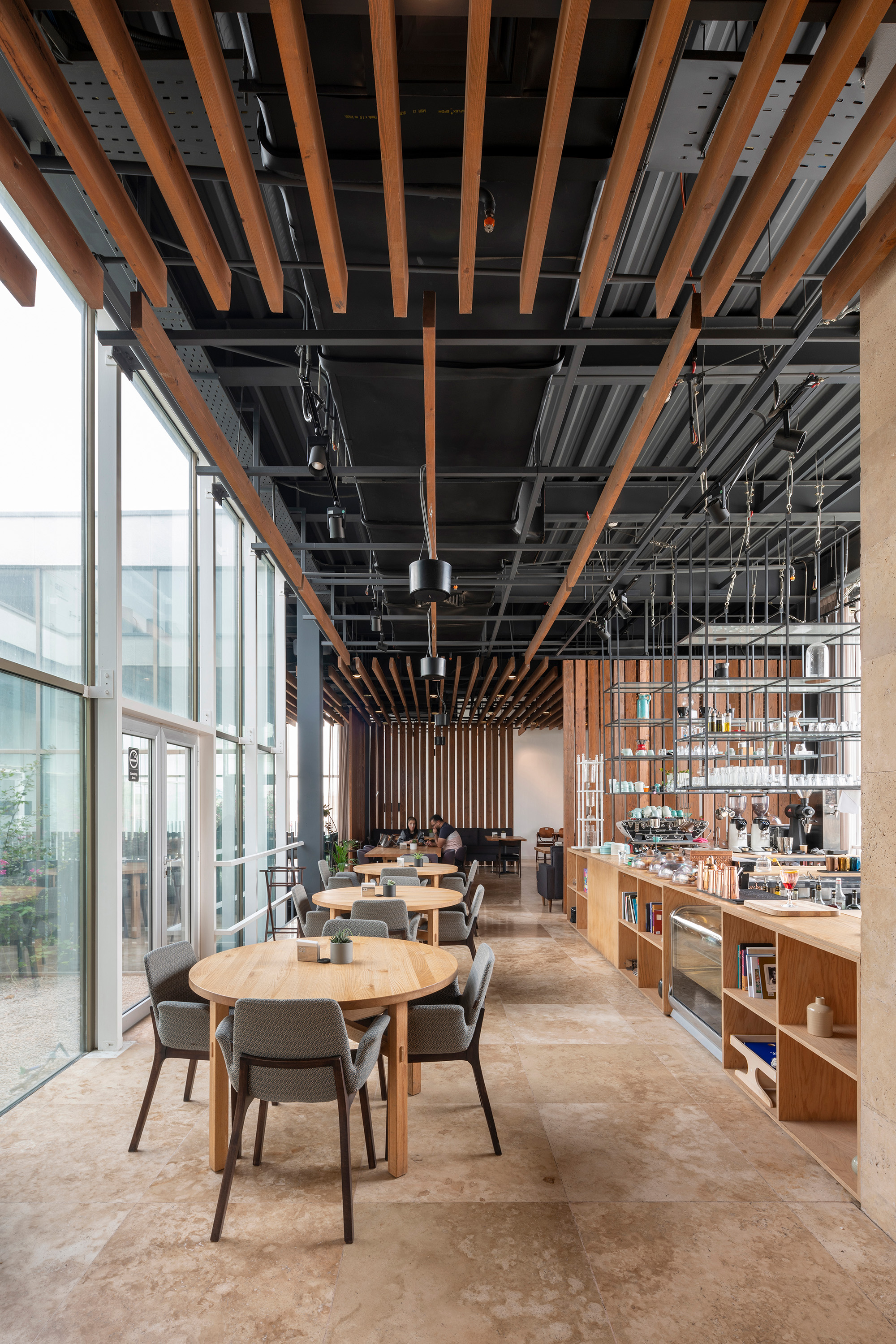 Описание проекта, предоставленное заявителем: Основными задачами команды проектировщиков были интеграция внутренних и внешних пространств, ориентация объемов, естественная циркуляция воздуха и света, контроль прямого солнечного излучения и привнесение зелёных элементов в ресторан и банкетный зал DA.