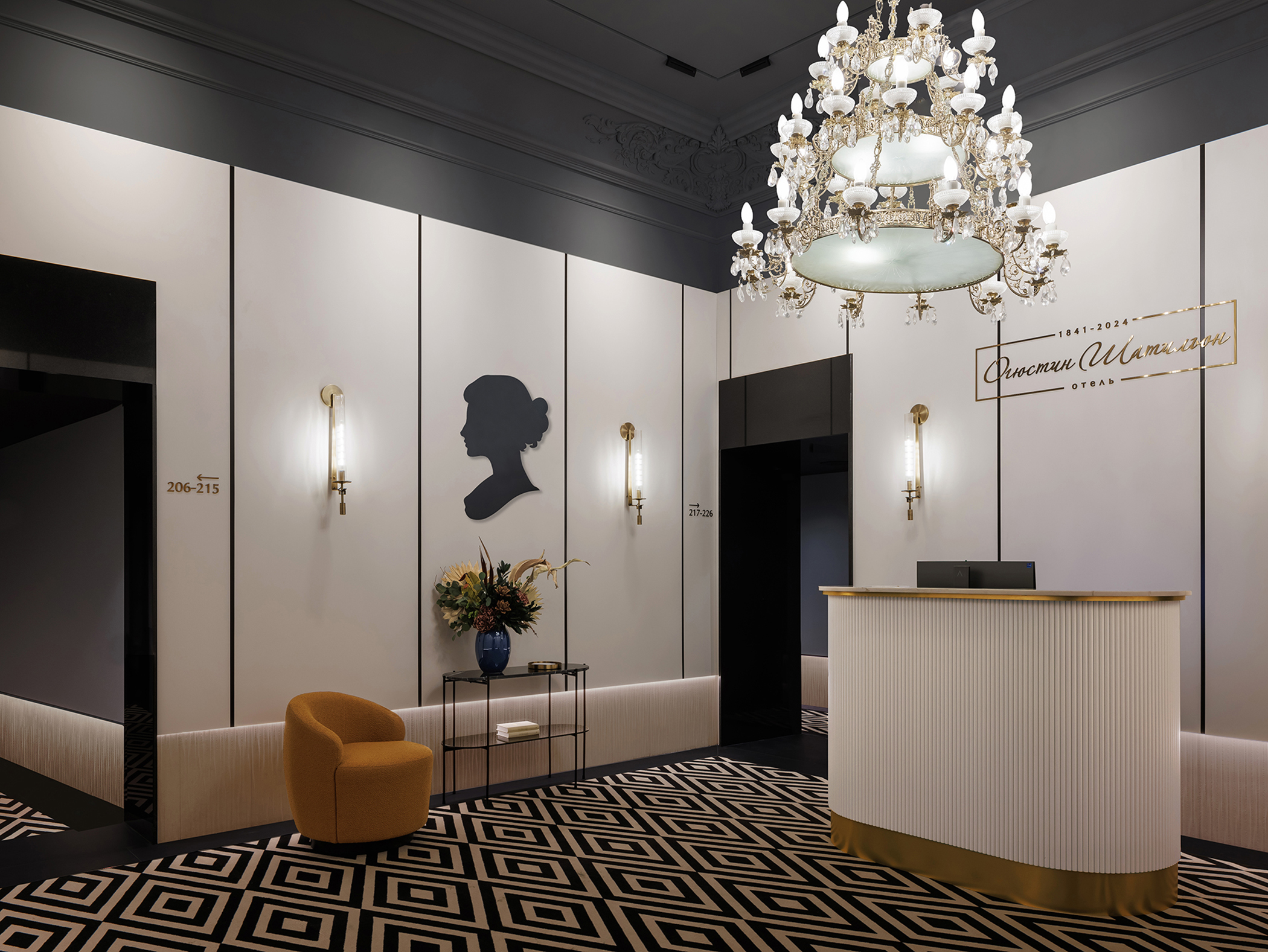 Главная задача заключалась в создании симбиоза исторических деталей и современных технологий. Уникальная лепнина, роскошный камин и антикварные светильники интегрированы в современный дизайн. За старинным фасадом скрыты технологичные инженерные решения. Планировка номеров продумана так, чтобы панорама Петербурга стала частью интерьера. Границы пространства размываются, перетекая в величественные виды Невского проспекта.