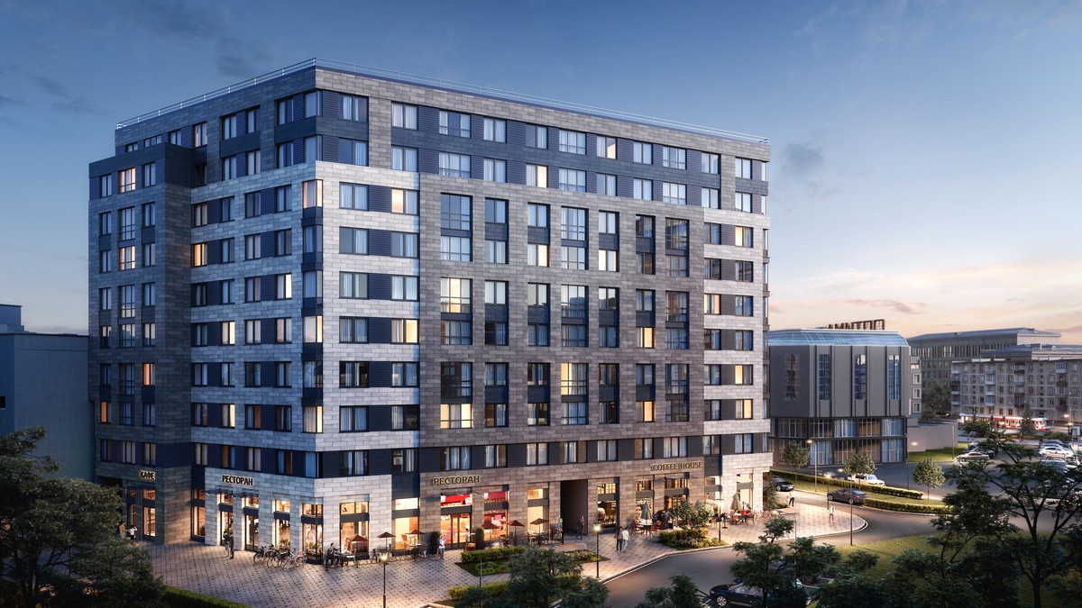 Благодаря архитектурной концепции проекта между комплексом и рядом стоящим зданием образуется внутренний двор, в котором будут оборудованы современные детские площадки, амфитеатр, зоны отдыха и workout.