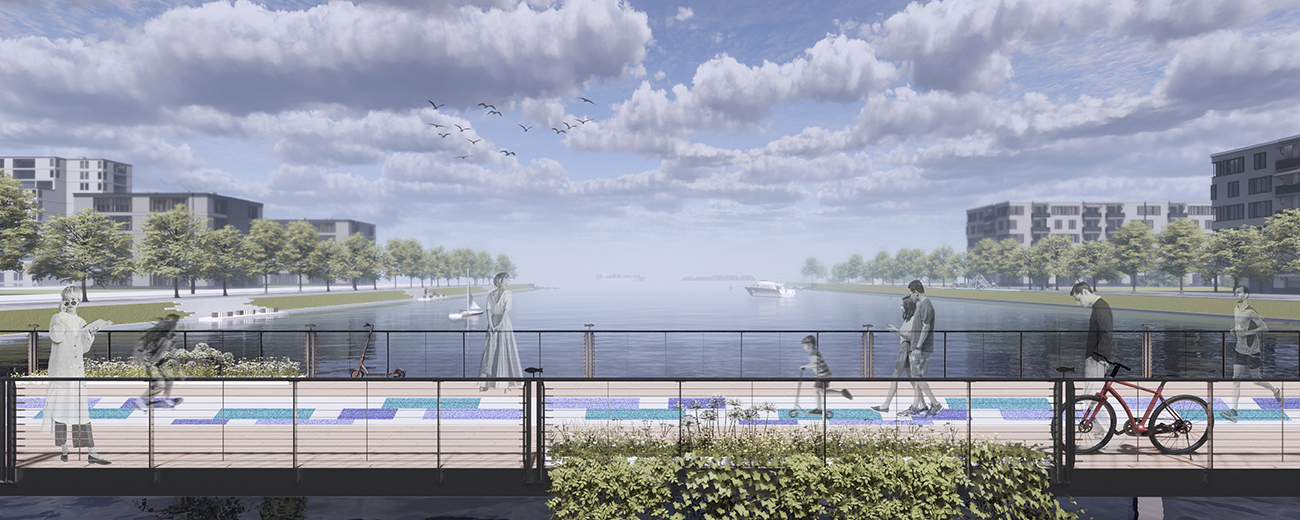 Проектное решение набережных Дудергофского канала включает в себя различные зоны отдыха, как тихие, так и активные, зону выставок и публичных выступлений, зоны тактильного сада и тактильной тропы для оздоровления местных жителей, а также плавучие острова для многочисленных краснокнижных птиц, замеченных на территории проектирования.