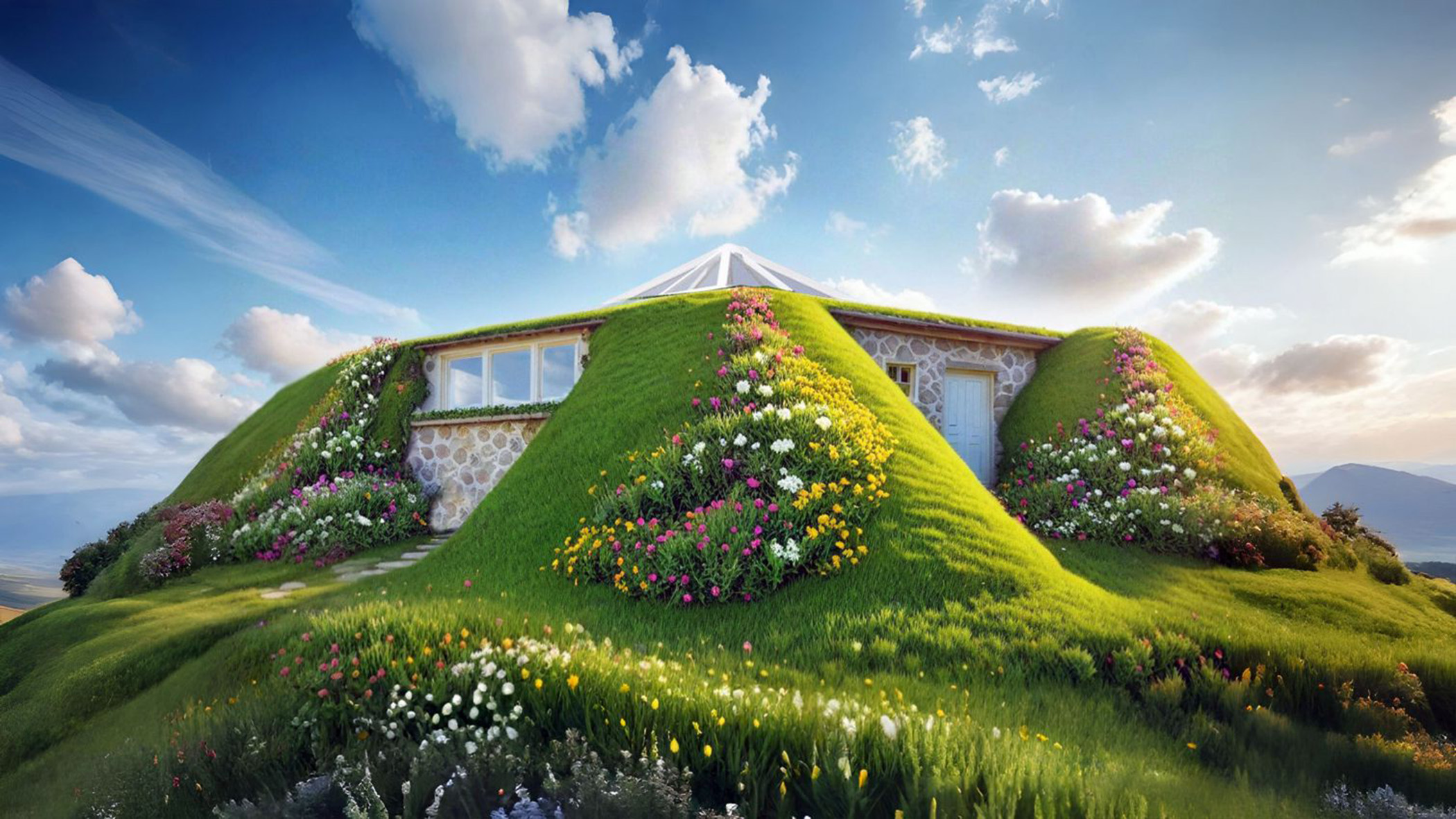 Дом основан на сочетании технологий: обвалованный дом, улучшенная технология строительства из мешков с землей и легкая крыша на основе каркаса.