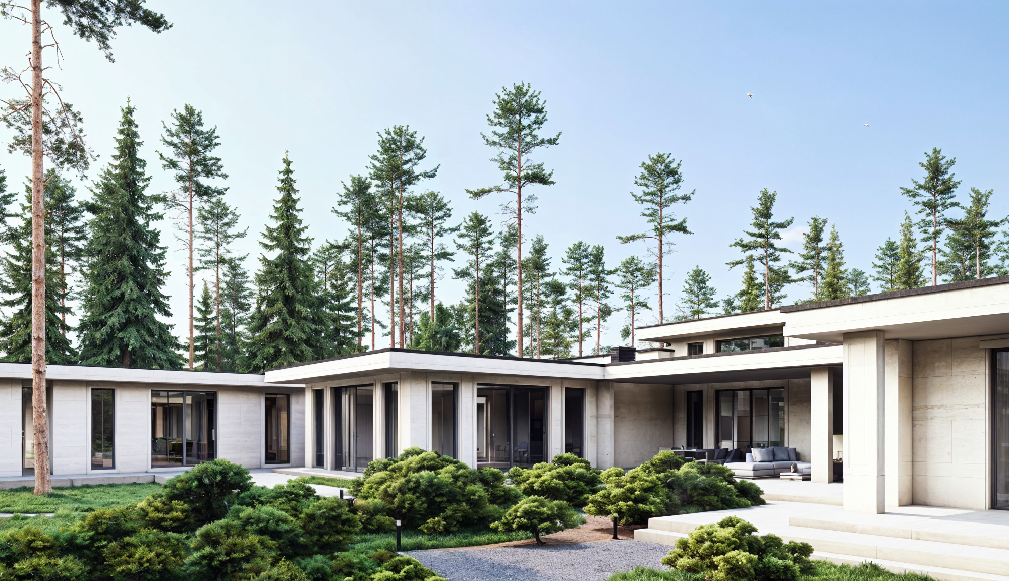 Описание проекта, предоставленное заявителем: Проект представляет собой архитектурный ансамбль из трёх зданий: основного дома, гостевого дома и гаража. Сердцем пространства становится кухня-гостиная со вторым светом и выразительным разноуровневым перекрытием — здесь архитектура задаёт ощущение простора и воздуха. В основном доме предусмотрен бассейн, а рядом с гостевым домом расположены открытые купели, дополняющие зону с саунами — место для тишины, тепла и отдыха на свежем воздухе.