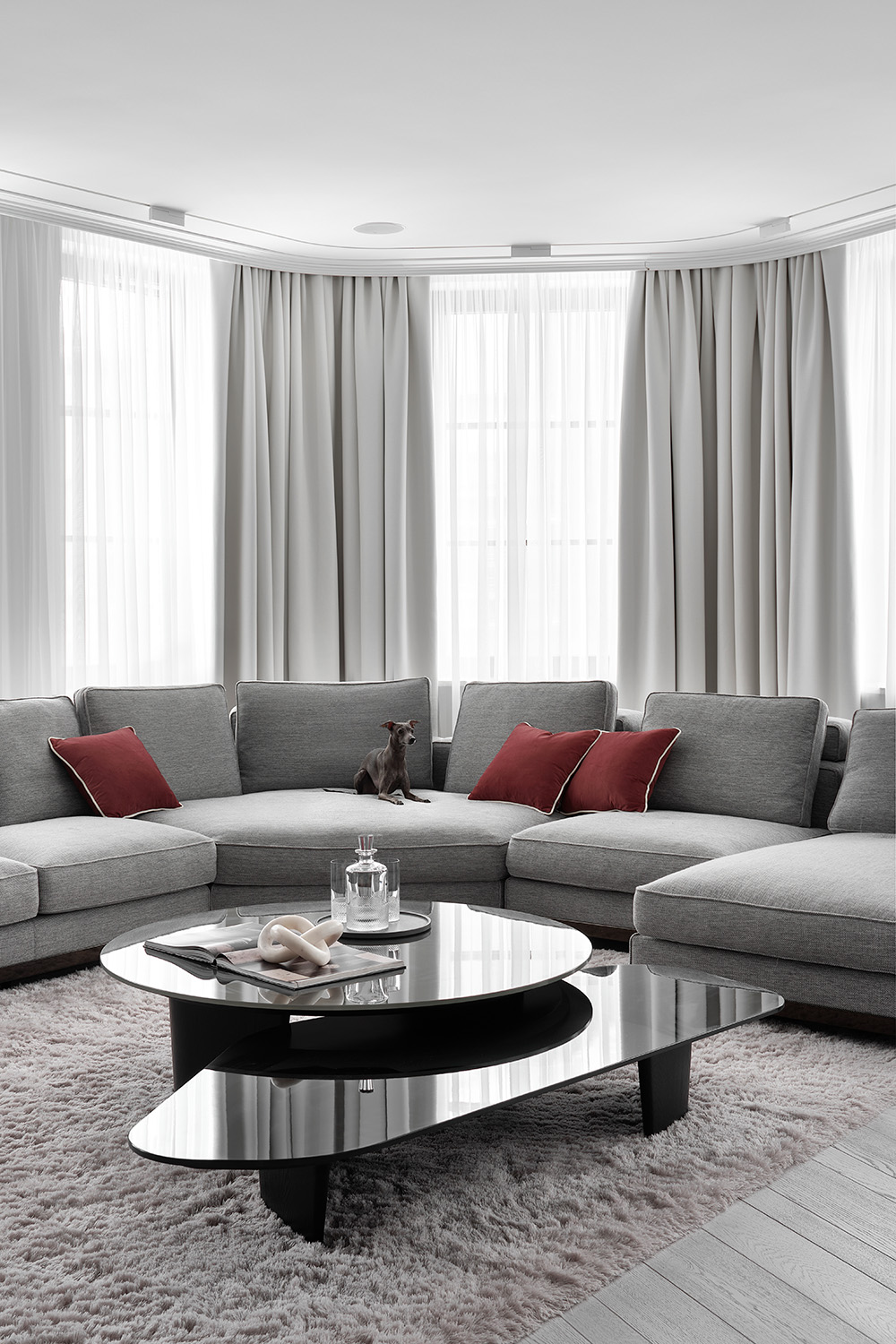 О проекте: Квартира общей площадью 282 м² расположена в жилом комплексе «Эспер Клаб» на Крестовском острове. Объект из разряда видовых, его главная достопримечательность — обзорный вид на Елагин парк. Основной идеей было создание элегантного, современного пространства, наполненного светом и воздухом, соответствующего премиальному уровня объекта и не перегруженного деталями.