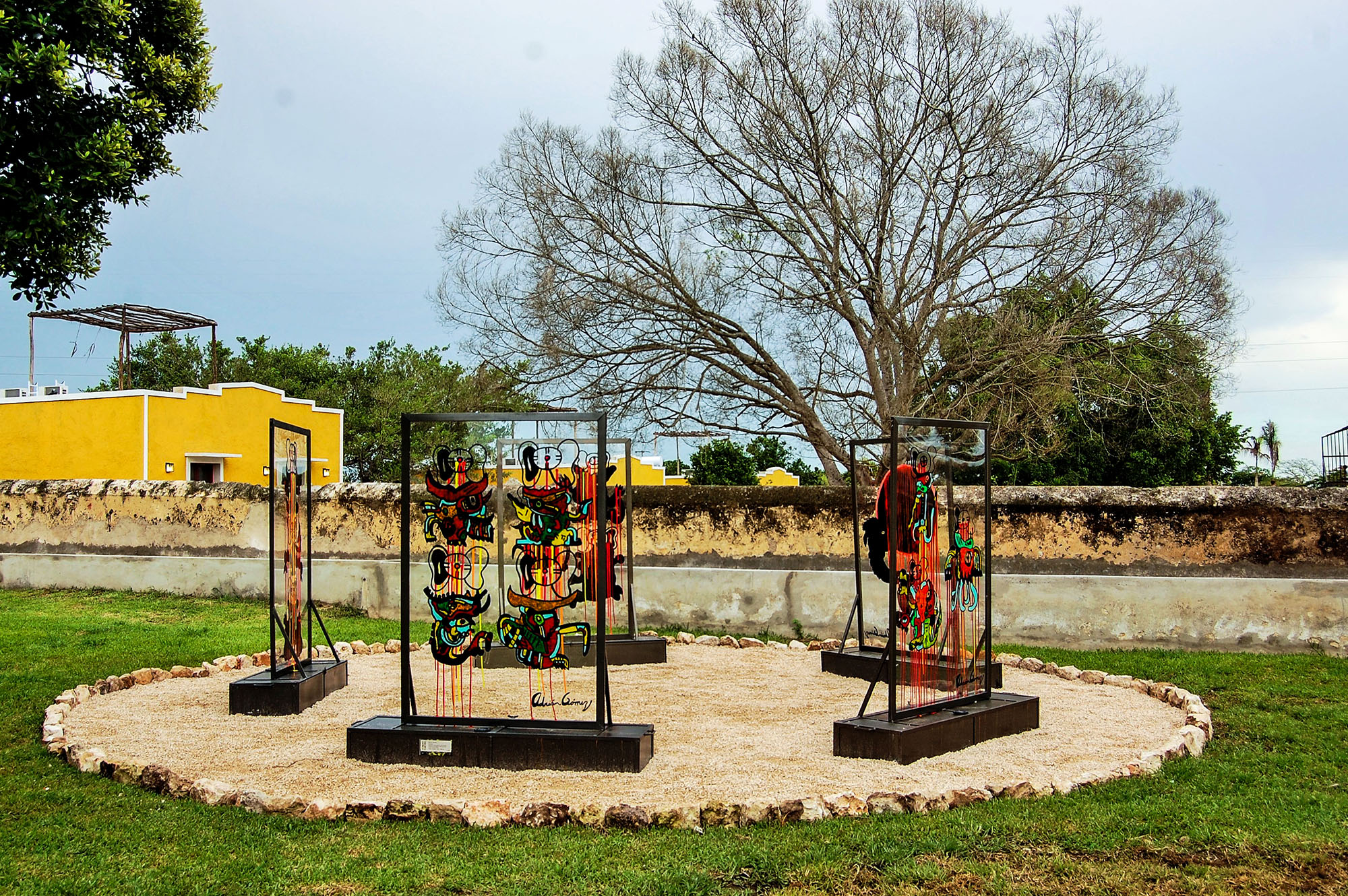 Перед тем, как приступить к работе над своим арт-объектом, художник Адриан Гомез внимательно изучил Кодекс Переса Майя, а затем предложил вниманию аудитории свое видение этой рукописи. Инсталляция включает в себя пять акриловых панелей в стальных рамах, установленных по периметру пятиугольника. Центральная часть объекта символизирует затмение. В зависимости от времени суток тени, отбрасываемые элементами работы, меняются.