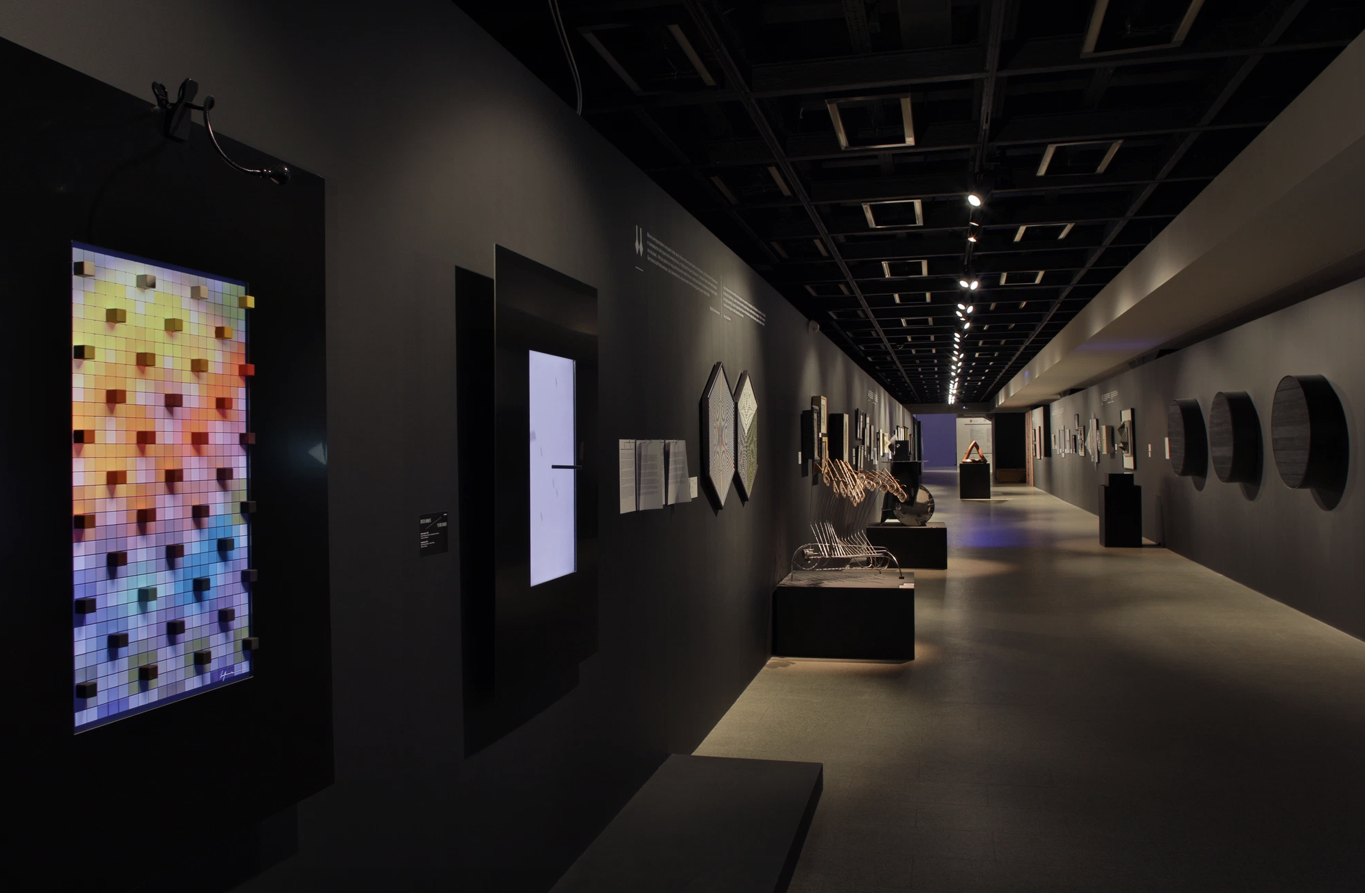 О проекте: Проект представил широкую панораму развития отечественного кинетизма, включив в себя более 400 работ. Архитектурное решение позволило проявить его связь с авангардистскими экспериментами начала XX века и актуальными художественными практиками. Реализация проекта произошла на двух значимых площадках: после премьеры 2020 года в ЦВЗ "Манеж" проект расширили и успешно перенесли в Третьяковскую галерею в 2021 году. Структура выставки в новом пространстве открыла иные грани восприятия проекта. Связь между разделами была адаптирована, осталось основное цветовое решение. Осуществляя движение через исследование взаимодействия цвета, зрители попадали к конструктивному "сердцу" экспозиции. Светомузыкальные макеты искусственной среды в следующем разделе задавали тему изучения окружающего нас пространства. "Лаборатория синестезии" глубоким синим погружала зрителя в изучение звуковых экспериментов постепенно подводя к Началу А.Волгина. Проект получил премию "Инновация-2021" как "Проект года".