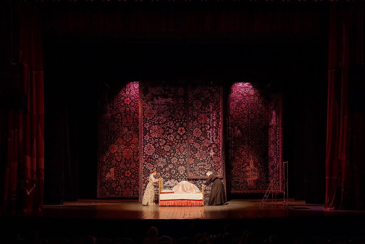 О проекте: В основе сценографии спектакля "Женитьба" по пьесе Н. В. Гоголя - лабиринт или стена из ковров. Единственным спасением для несчастного Подколесина становится дыра - выход, подсказанный самим автором пьесы. На коврах видны «потертости» с рисунками самого Николая Васильевича Гоголя и изображения атрибутов эпохи Николая I. Все это мир Гоголя, мир его фантазий, где исходным «совершенно невероятным» событием становится положение из брачно-семейного права того времени.