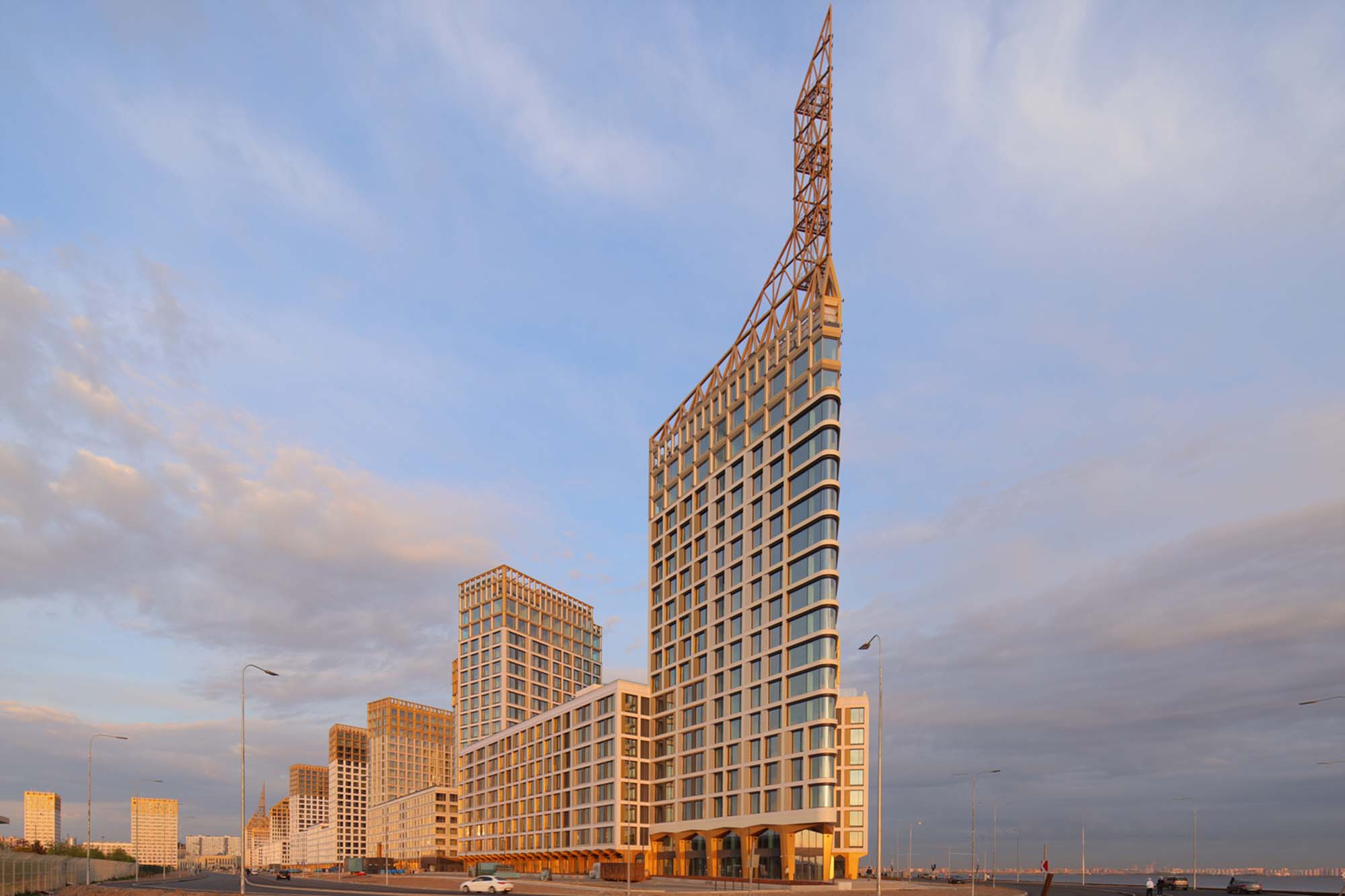 Мультиформатный комплекс призван стать визитной карточкой города, формируя панораму Финского залива и продолжая ряд главных доминант — золотых шпилей Петропавловского собора и Адмиралтейства. Концепция основана на морфологии исторического центра Петербурга — замкнутых кварталах с дворами, садами и лабиринтами, общественными пространствами. Высота зданий варьируется от 6 до 17 этажей, чтобы подчеркнуть силуэт, обеспечить виды и учесть ветровые условия. Тема «Мы и соседи» объединяет кварталы, а индивидуальность создается ландшафтными решениями, характерными для стран Балтики.