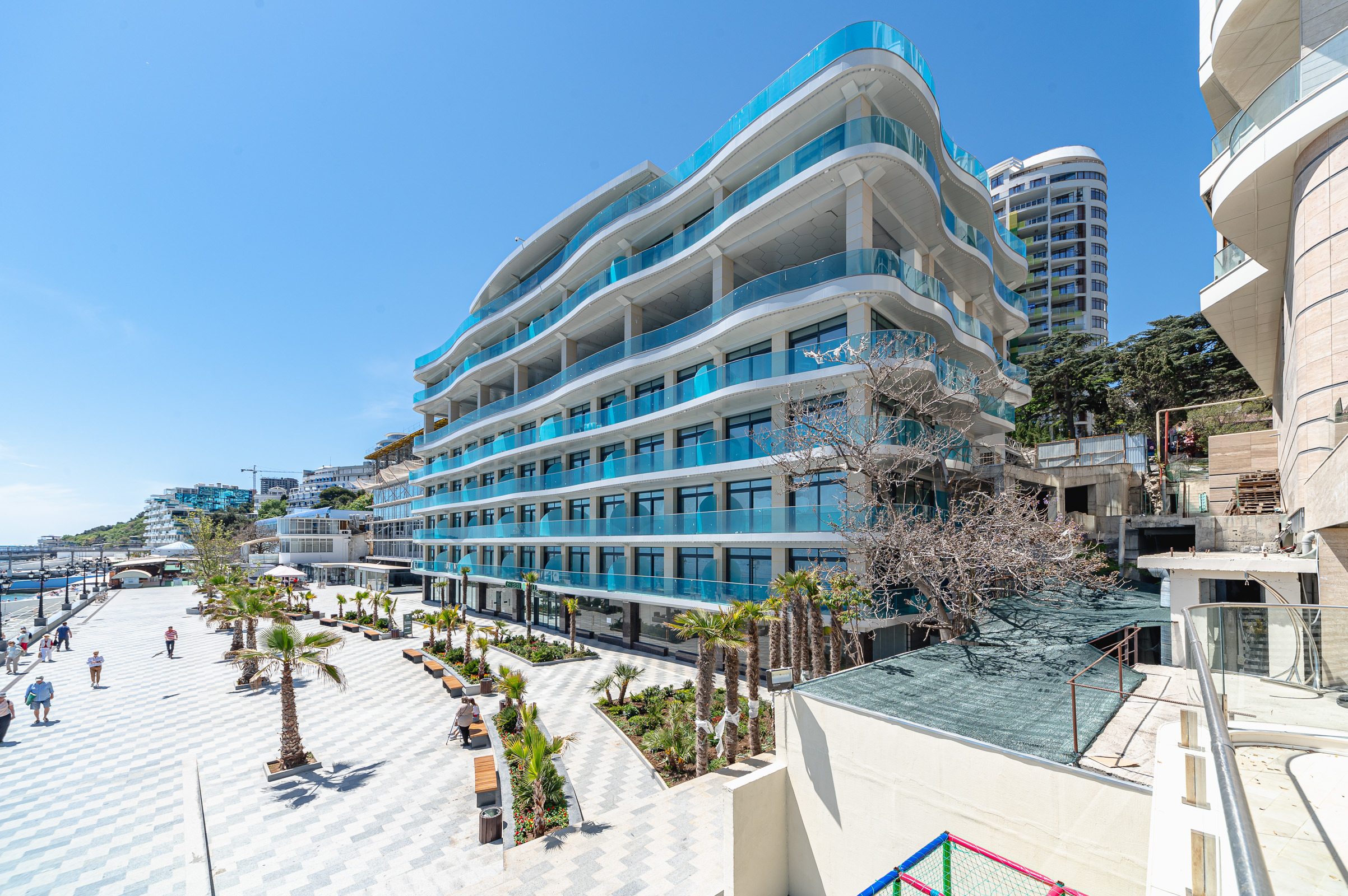 Комплекс содержит многоуровневый паркинг на 15 машиномест, расположен на первой линии набережной Ялты. Общая площадь апартаментов - 4 000 кв.м.